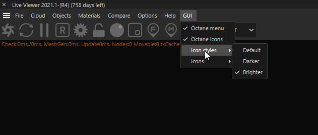 Please do something with the contrast of the liveview window tool icons in R25. It is very annoying and unpleasant the way it is now. Sometimes can't even tell if geometry, lights,... updates are active or not.