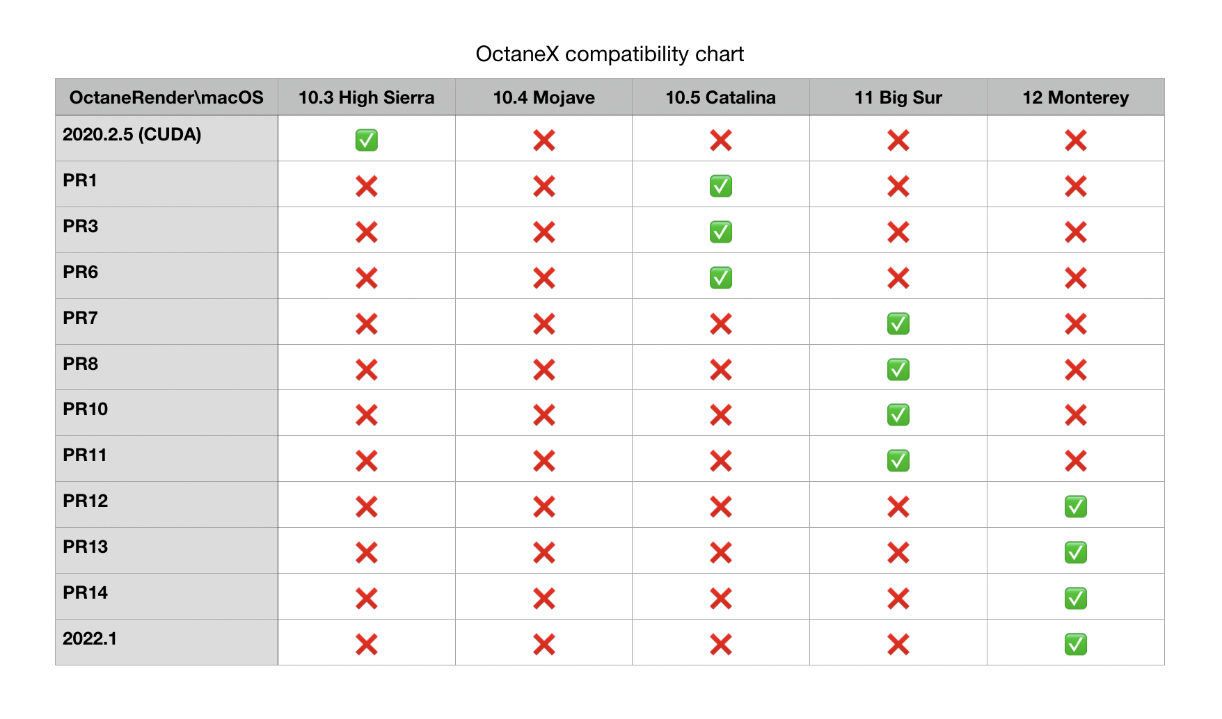 It might be useful and save a lot of questions if you guys make a little chart with the various OSes, hardware, and Octane combinations, showing which work and which don't. I realize that's a lot to ask for the entire line of Octane plugins, but basic Octane Render compatibility would be tremendously useful and save a lot of chatter.