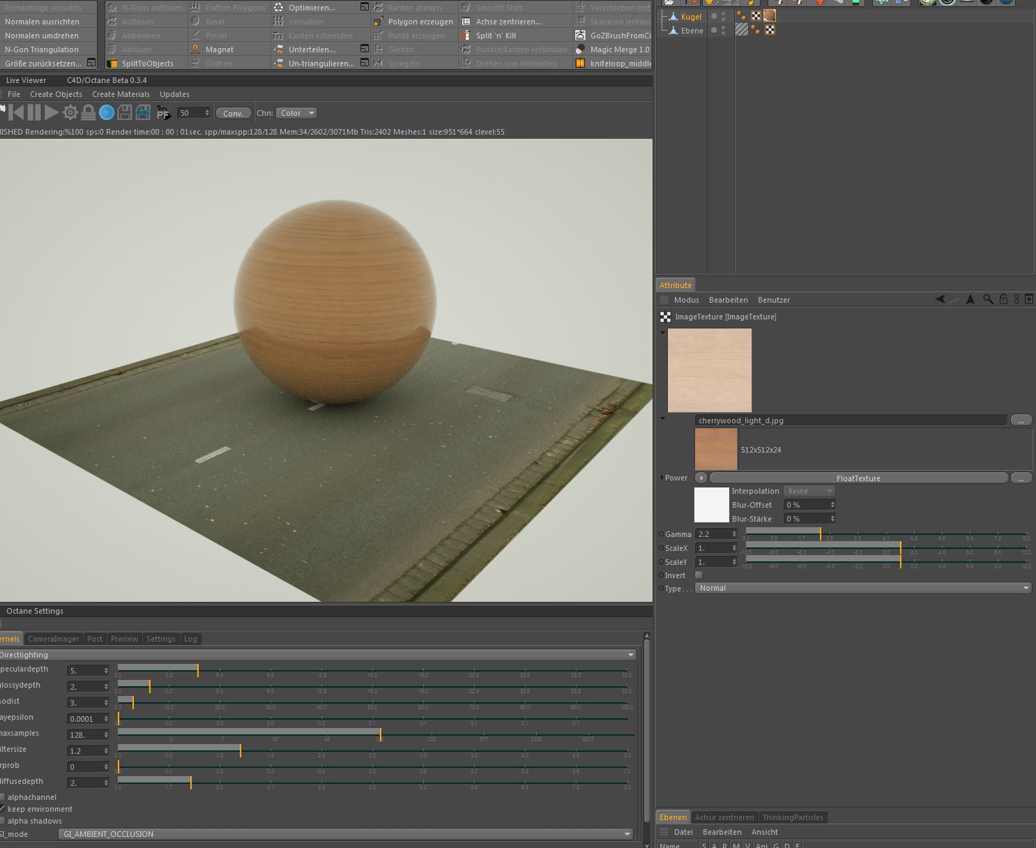 Second I added a sphere (converted) with a wood texture in the imagetexture channel (tex_2).
