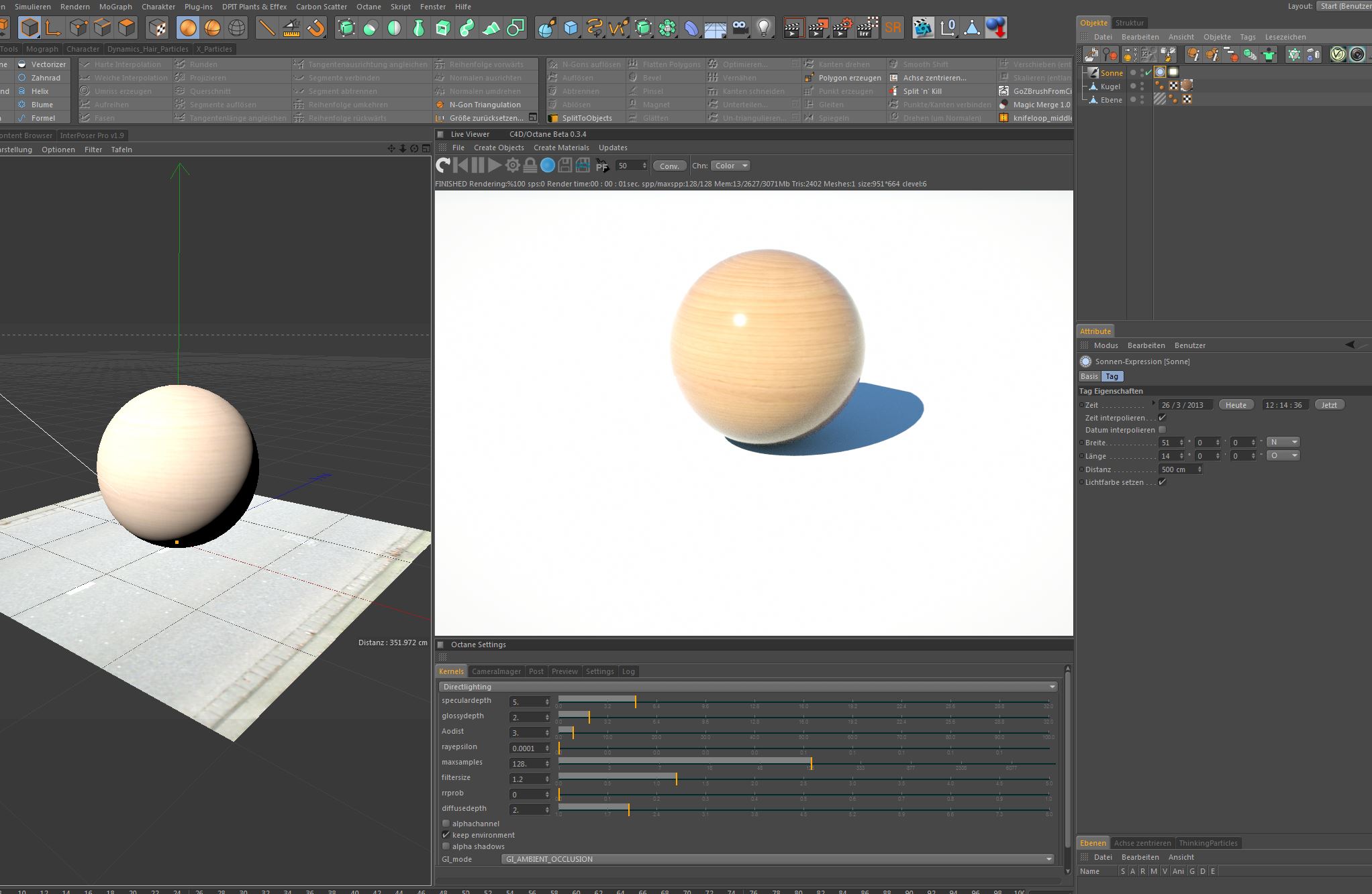 for last picture, there is only a object in Object Manager. where is ball and sun? Also OctaneLight Tag is works arealights only. For sun you have to put DayLight Tag.