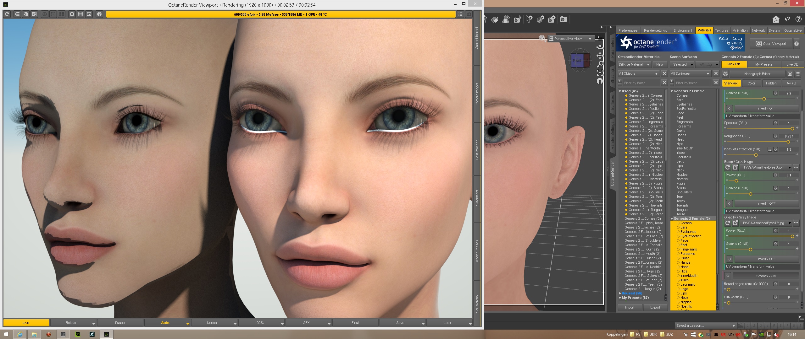 (1) OcDS 2.23 (2) Daz 4.8 IRay (3) Octane Render Standalone 2.23