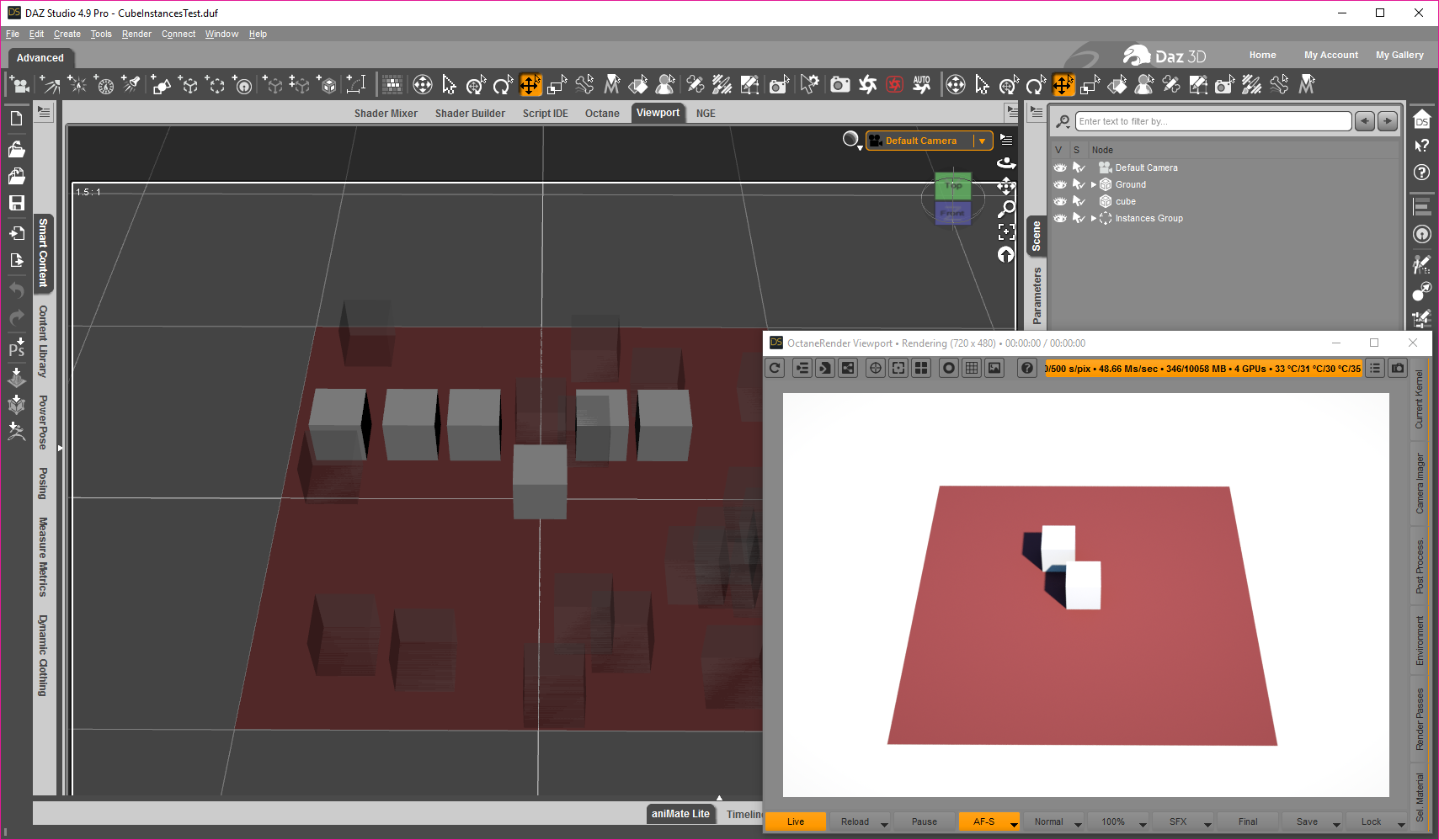 1. Open Daz Studio and load the cubeinstancestest.duf.