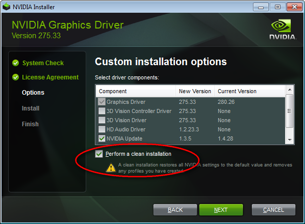 Yes, just download the driver and launch the installer. In the dialog where you can choose between "Express" and "Custom" install, pick "Custom": In the next dialog, enable the option "Clean install": This guarantees that everything gets installed like in a fresh install. The only problem is that you then have to disable the multi-GPU mode (SLI) again (see my previous post).TheOracle wrote:Hi there