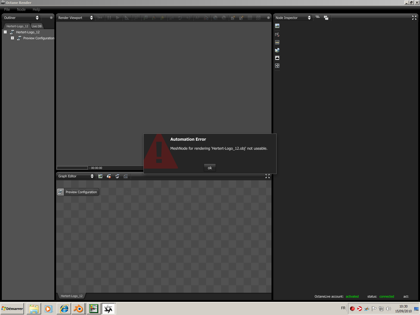 I also tried to open the scene in OctaneLive 2.3. It works fine if opened within Octane, but rendering through the Export script gave an other error message (second screen).