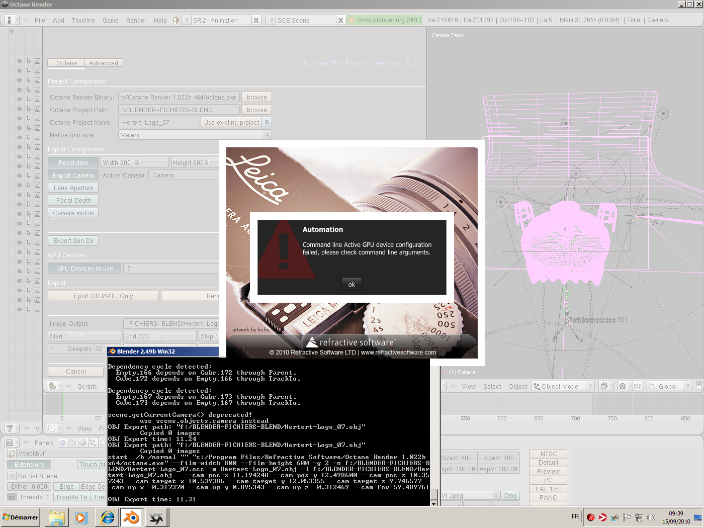 I have added the Blender console in the image in case it could help in some way.