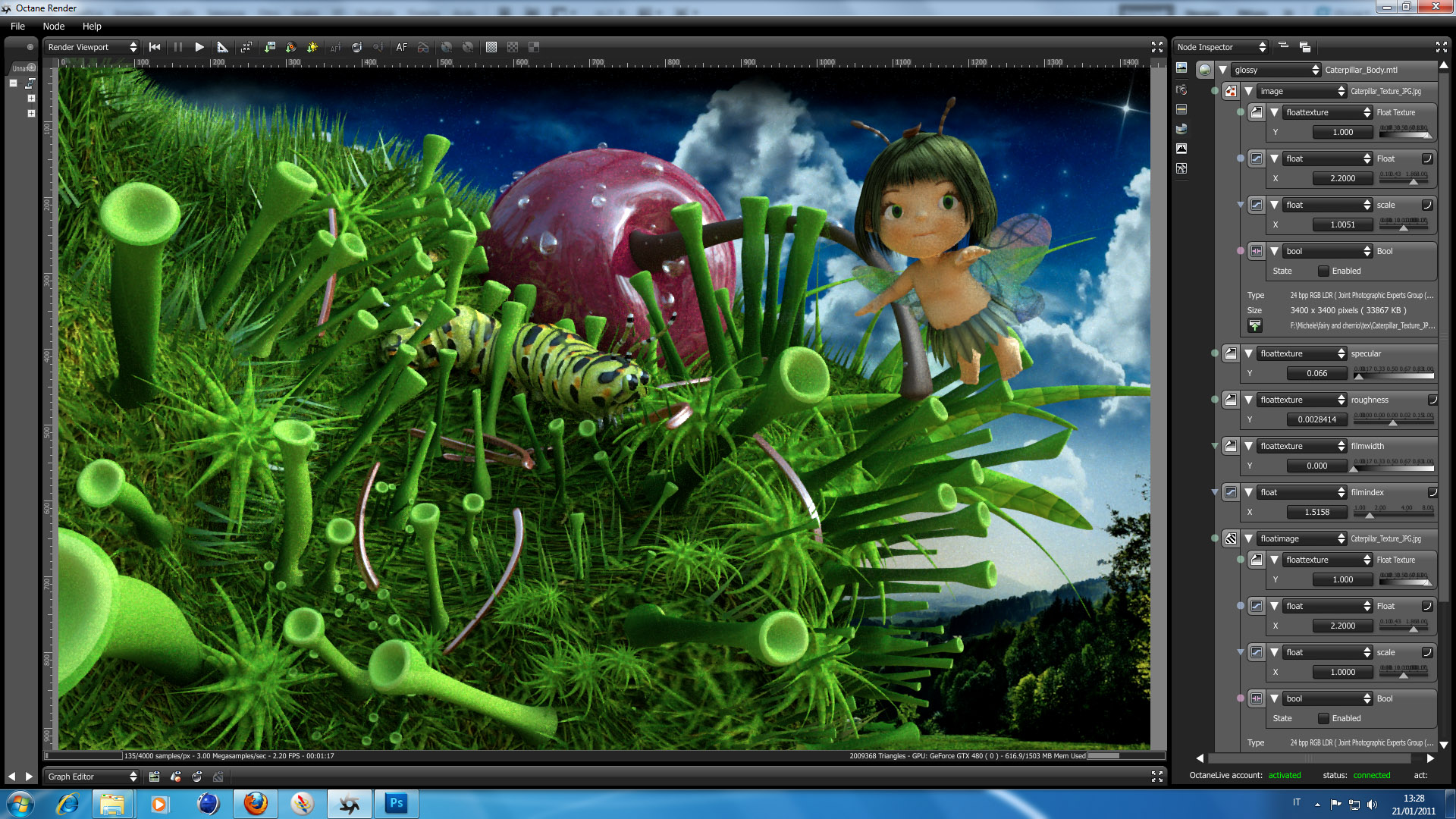 I have rendered the scene with the Pc system of my coach where I work with a GTX 475 2GB