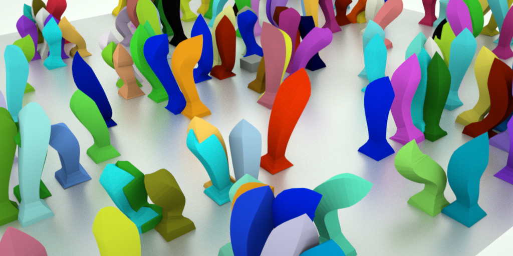 Same as above, a cube with a size profile curve on the strands, this time with various particle sizes and subdivided...