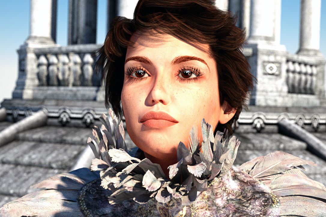 Here's my first render, where I spent most of my time trying to get a nice skin texture with SSS.