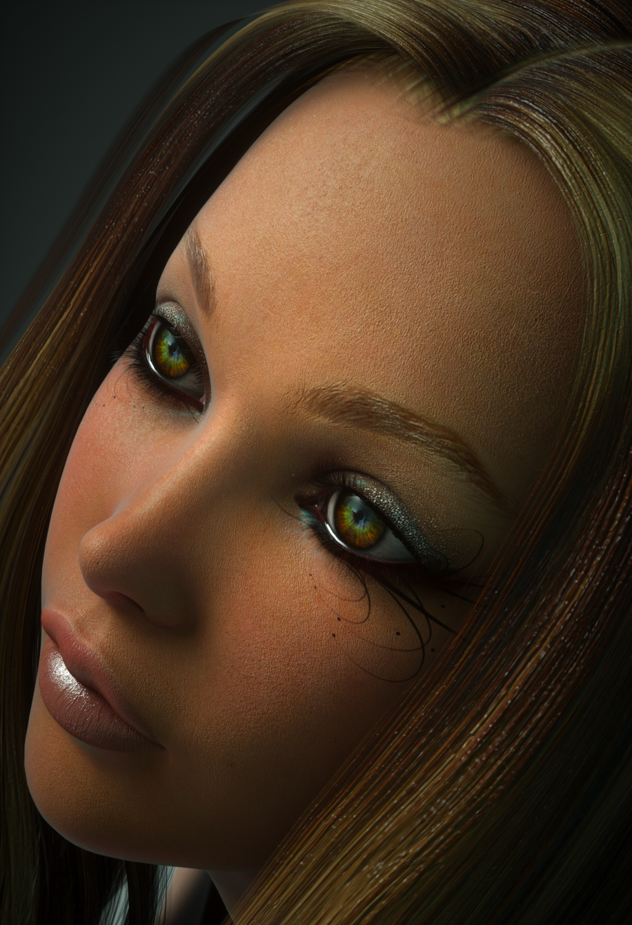 The roughness you are revering to is actually turbulance instead of the character specular map. there is many ways to go about this. I prefer the character specific Specular tho. but the sss looks good and the hair fantastic.... people dont always know how much work goes into sss alonevoon wrote:Yes, love the complete image with hair etc ... the skin texture adds a lot to the natural irregularities needed to see it as natural. However, the roughness is still odd to me on closeup. It rather creates somewhat large crevices and insulae instead of pores.