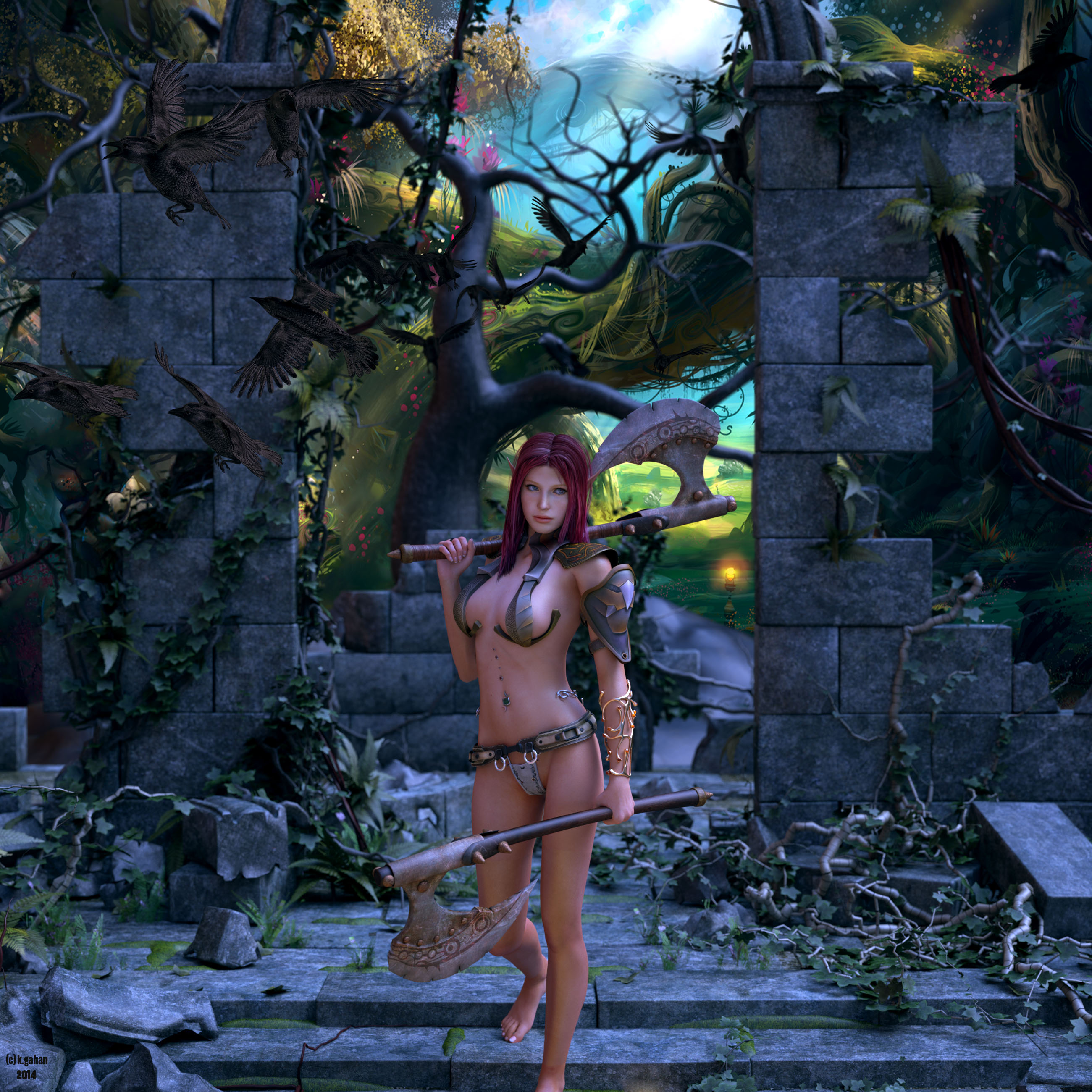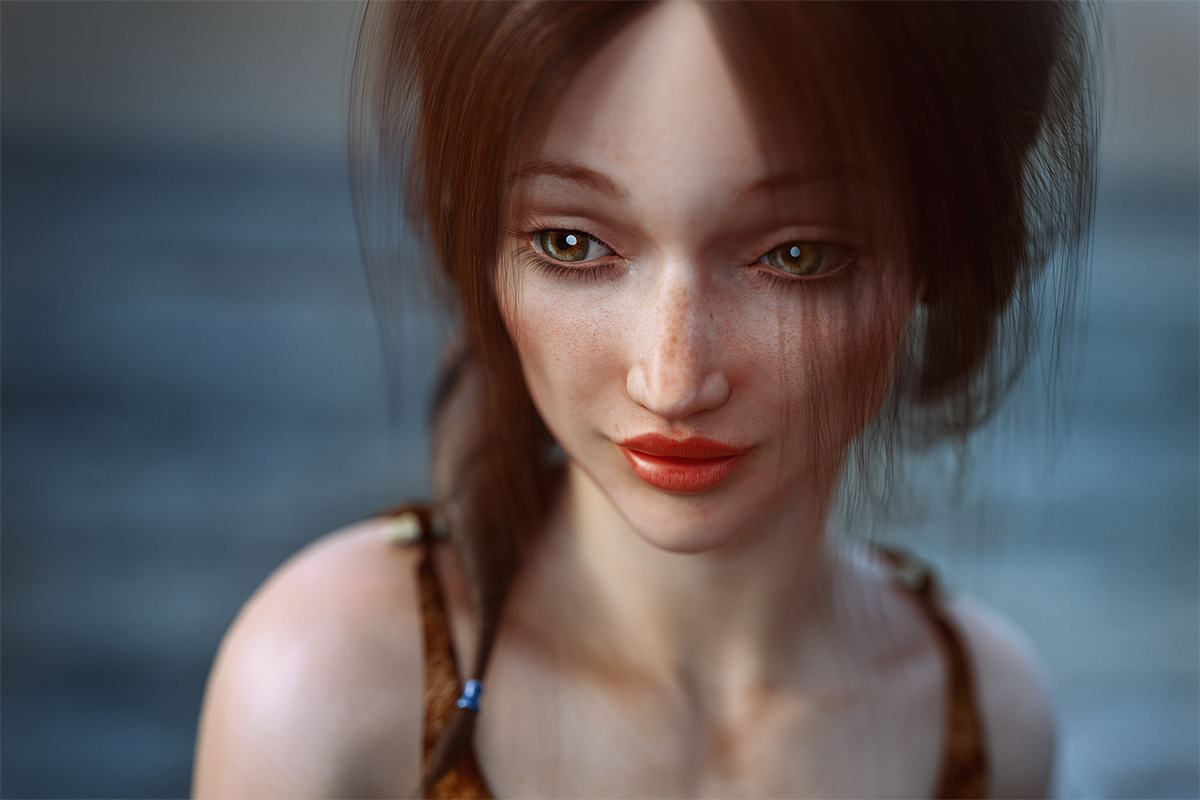 Here's my first render, where I spent most of my time trying to get a nice skin texture with SSS.