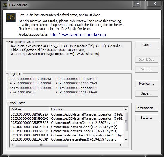 I have a problem came back to daz after a week of being away and not daz crashes on startup