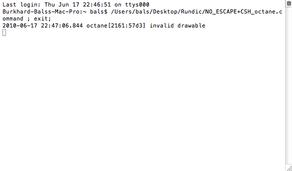 When starting NO_ESCAPE...._new.command with a double click octane starts and imidiately shut down with : invalid drawable ( see attached )