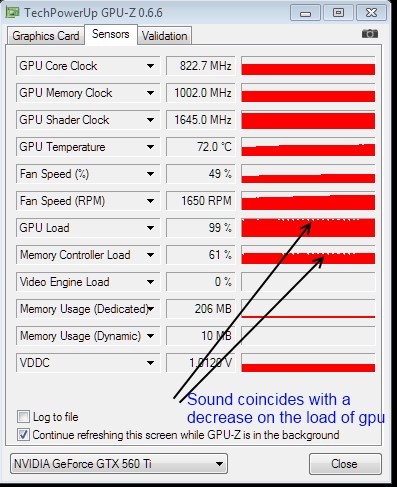 with gtx 590 (msi with dual fan onto it) ... when I use it for rendering without any post processing there is a small continuous voice. (which is happening from the very first day I bought the card. I ignored it until now).