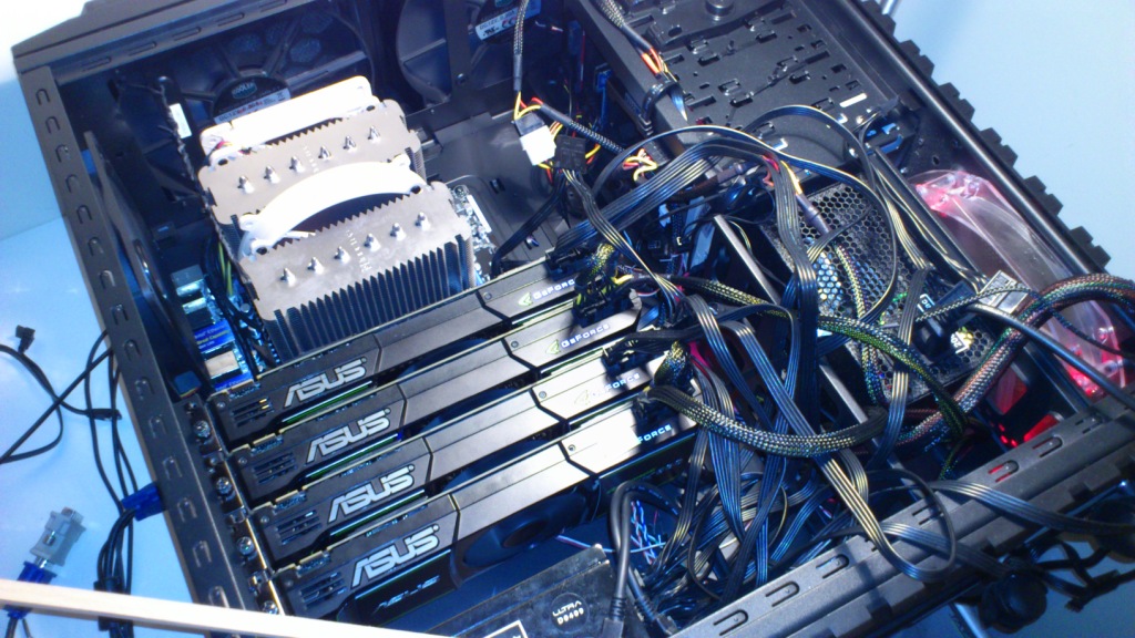 I managed to get 4 GTX590 working, but only if connected directly to the MB pci slots....but temps just go UP because there is no space to get enough air in. Tested to see if was a power problem but...it works very well, 1600w power draw...so 1900w is more then enough.