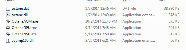 for 2.1 the file version must read 2.1.212.4166 (and 2.12.0.1 for the octane.dll)