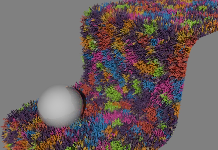 "One important feature of the Octane plugin is that each fiber inherit the UV coordinate available in the base mesh at the fiber root point. This feature makes possible apply texture maps to the hairs, as you can see in the next image."