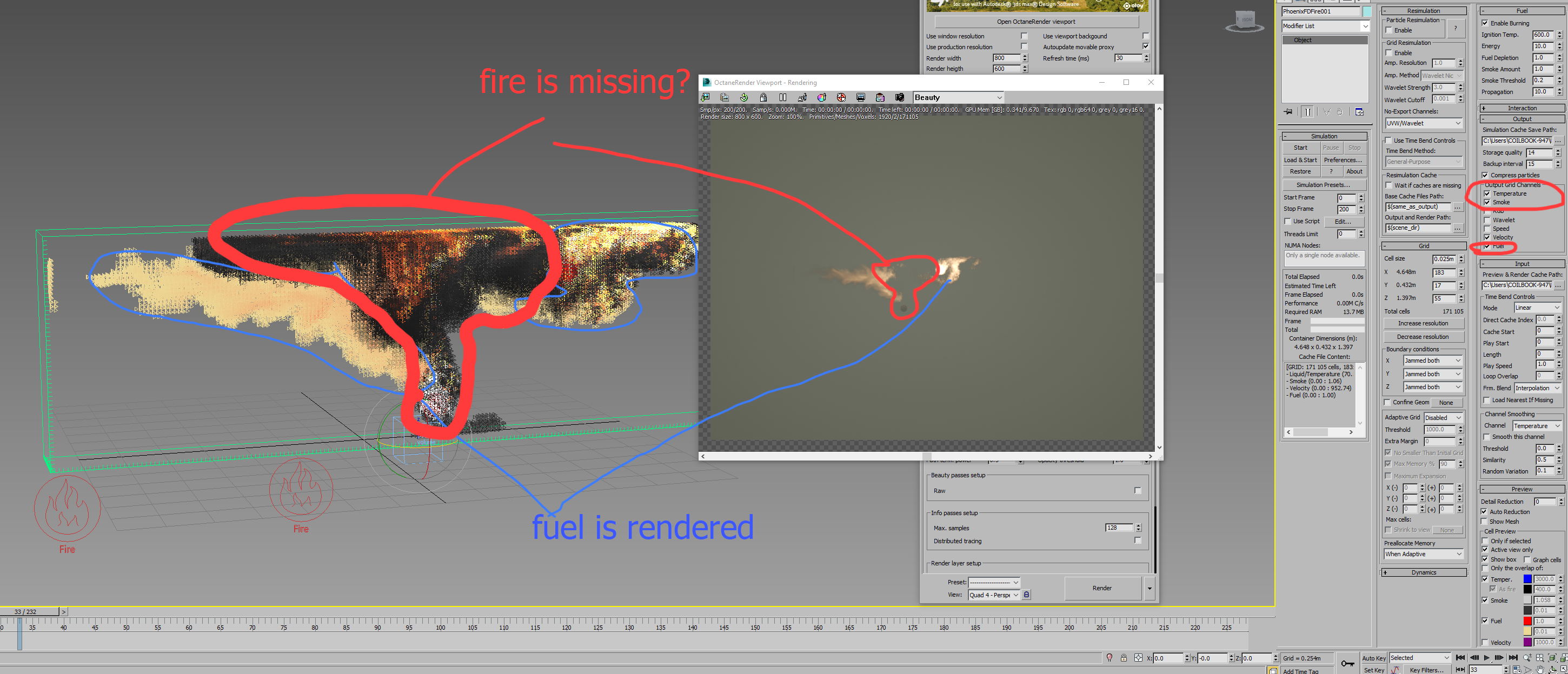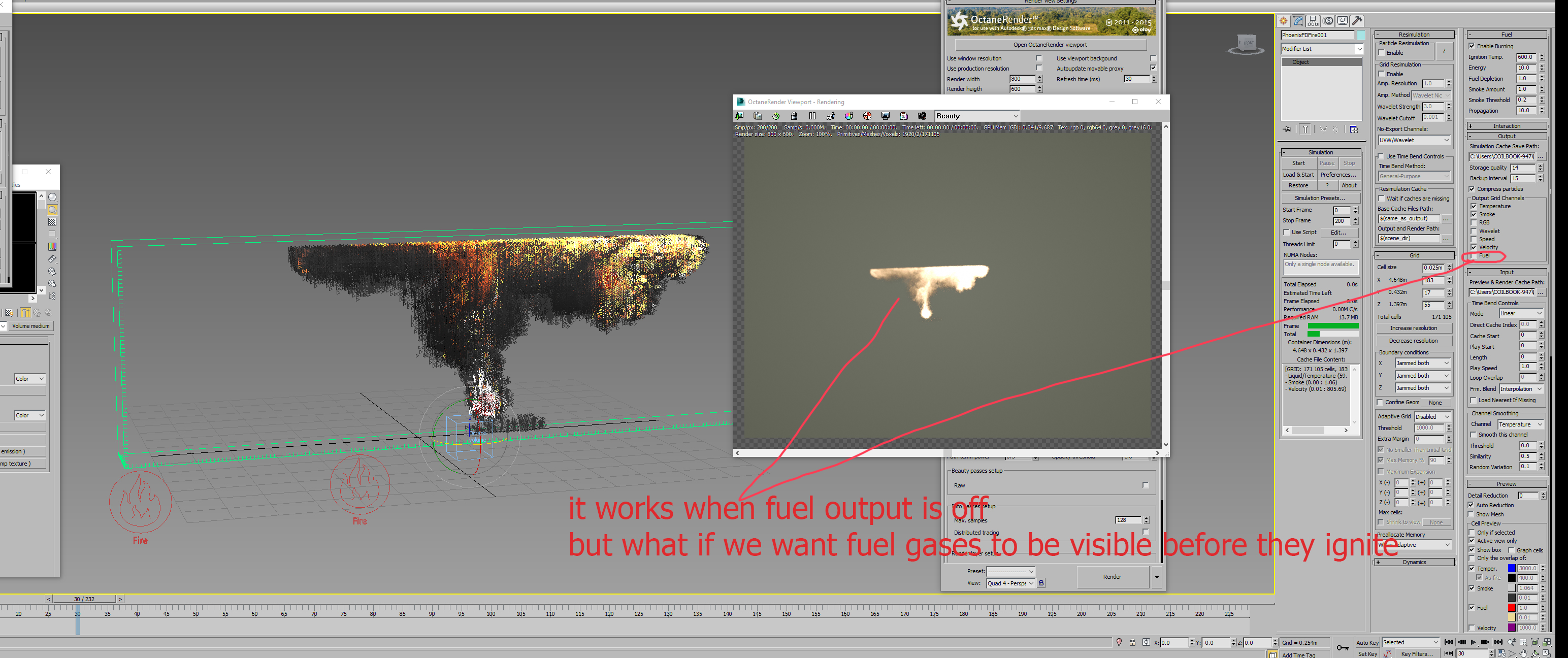 2. If fuel is renderable, fire is not rendered anymore. Empty space. Please see image attached you can see lit fuel but empty place where fire/smoke is supposed to be.