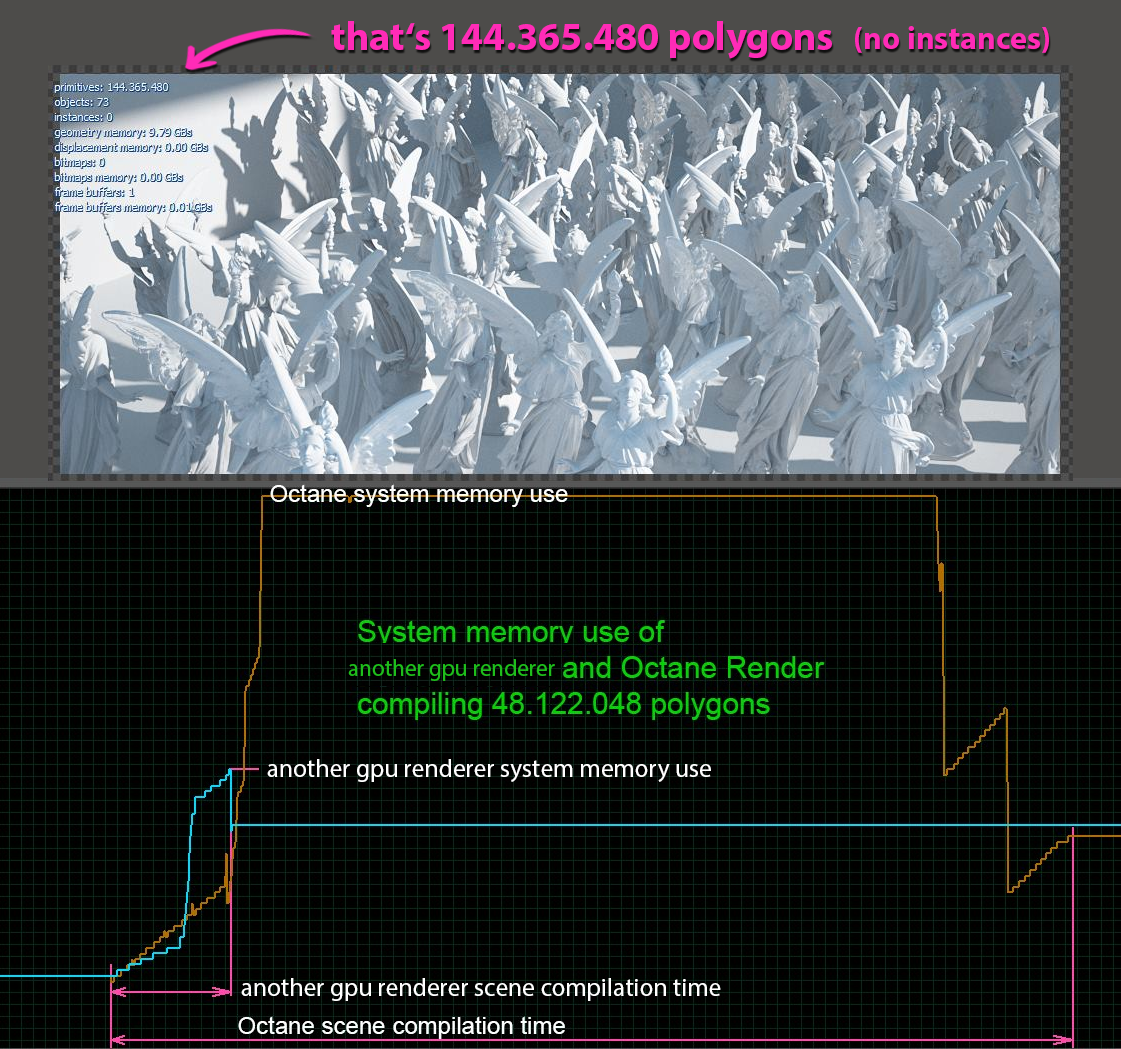 5 "Octane will automatically sett all properties and work fine".. > it means automatic memory distribution between textures and geometries.
