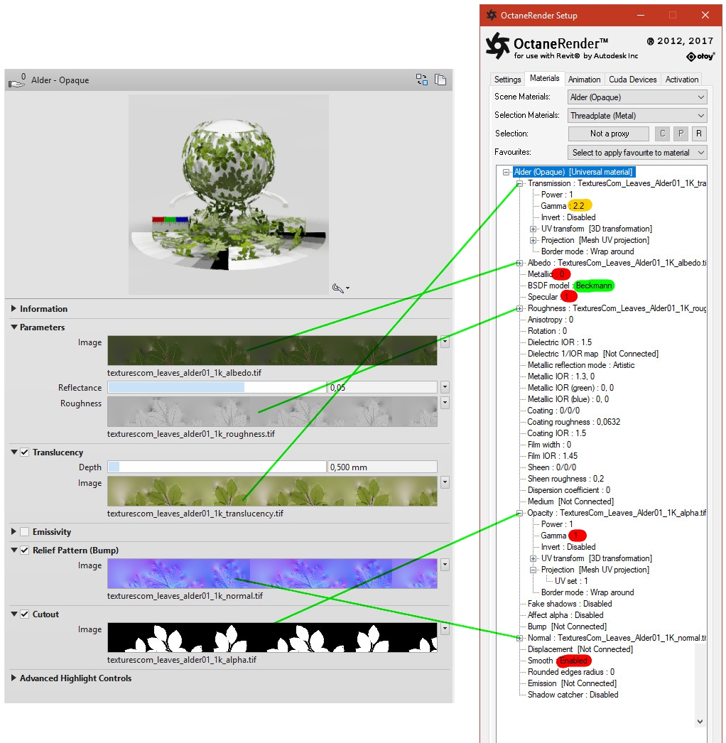- All (used in this examples) textures need gamma setting of 1 except albedo, though I'm not 100% sure for transmission.