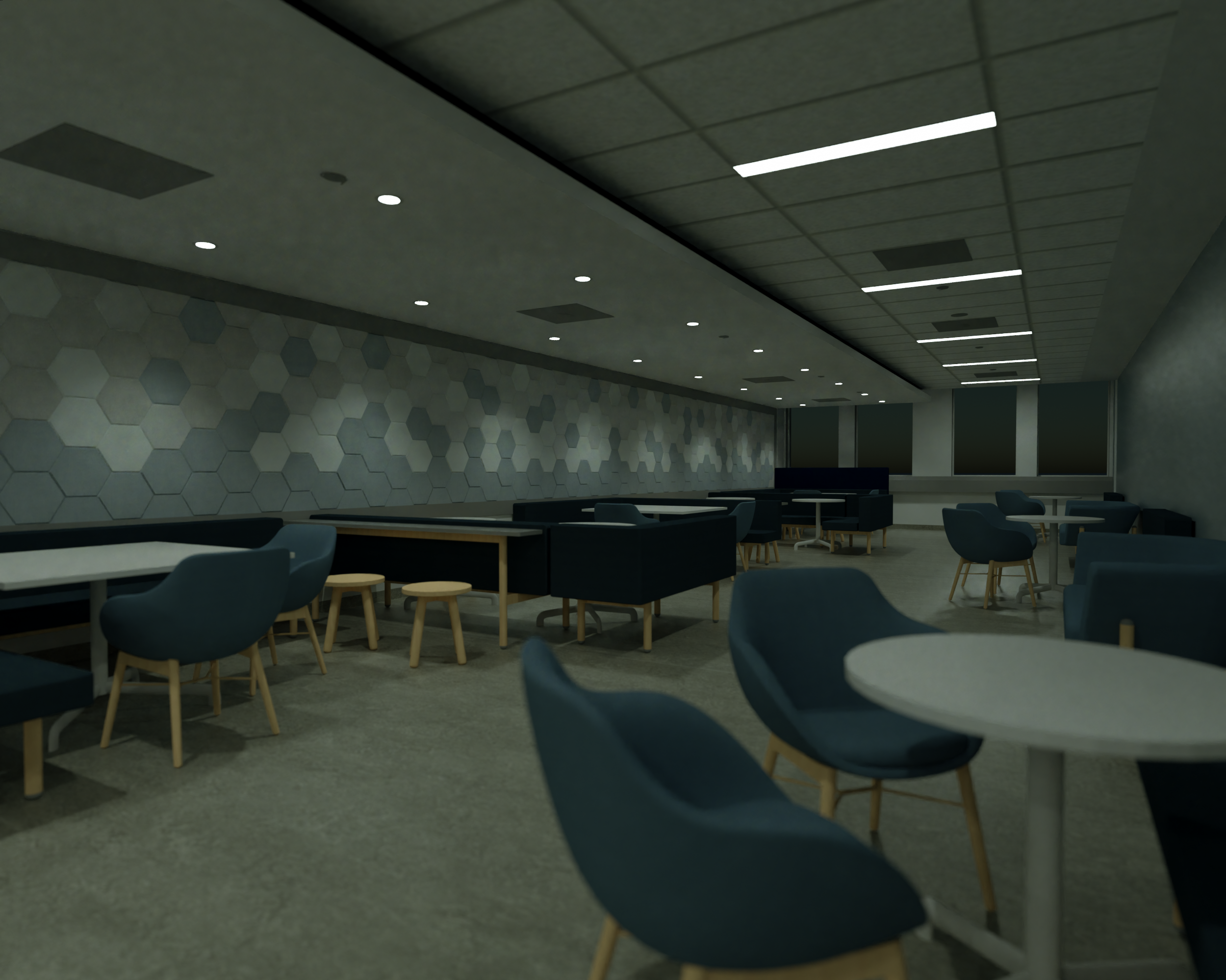 I have two comments regarding the lights. Right now, there are made of two component: a lit surface material on the lens part of the light fixture and a n actual "light" component. The material glows but does not emit ant light in the scene (not visible).