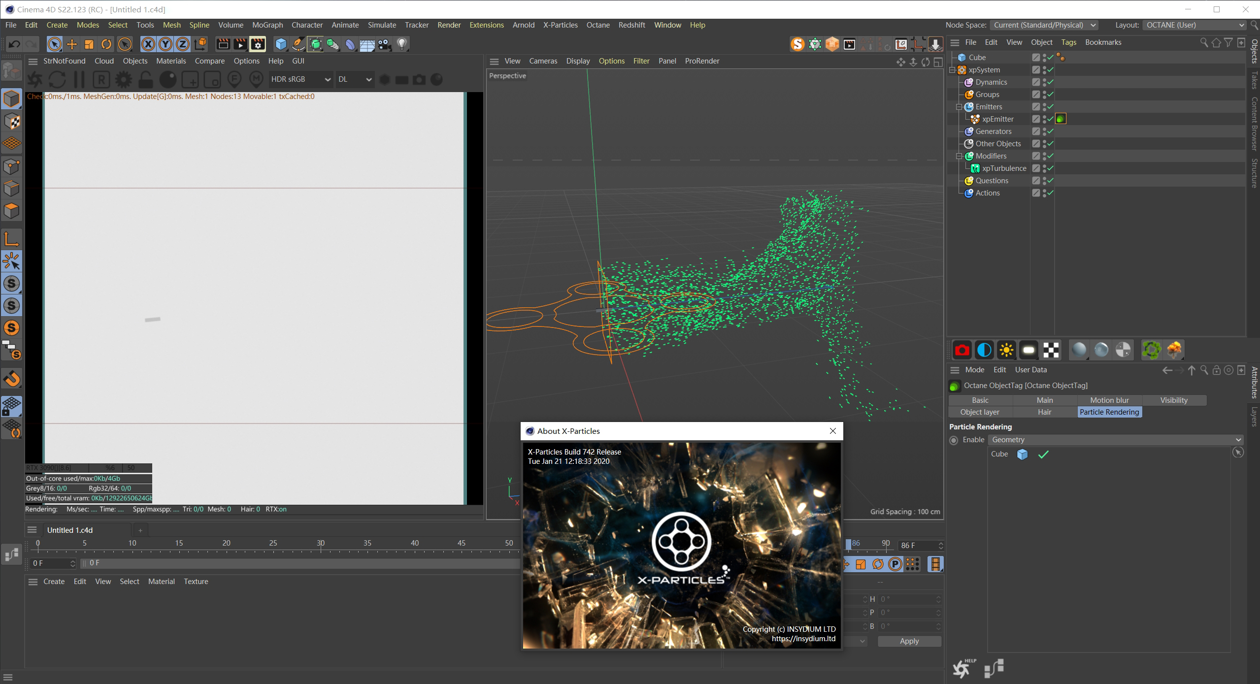I was unable to render X-Particles using the Octane ObjectTag.It can work normally in 2020.1.5_R4.
