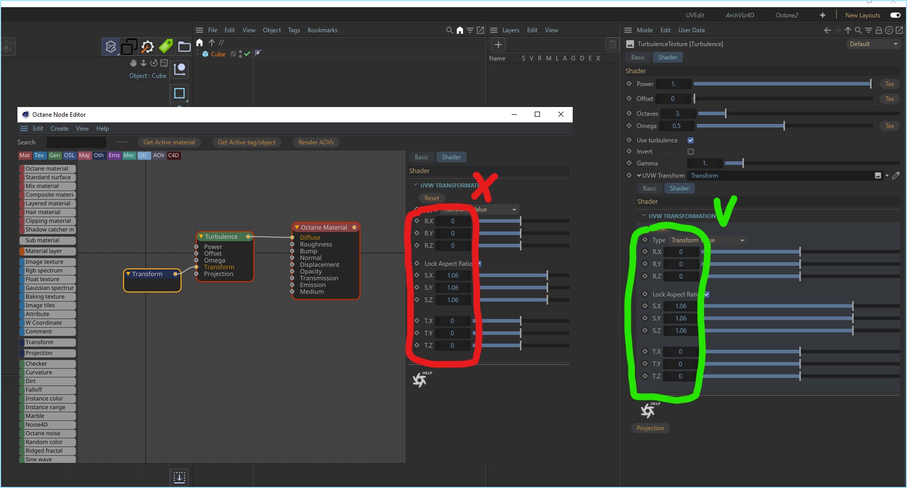 But with some things this is Octane fault not C4D itself - for example UV mapping - if you move UV island ( in UV editor panel ) and release mouse button after that you will see that in UV window this island stay at the same position but in Octane LV it will move.