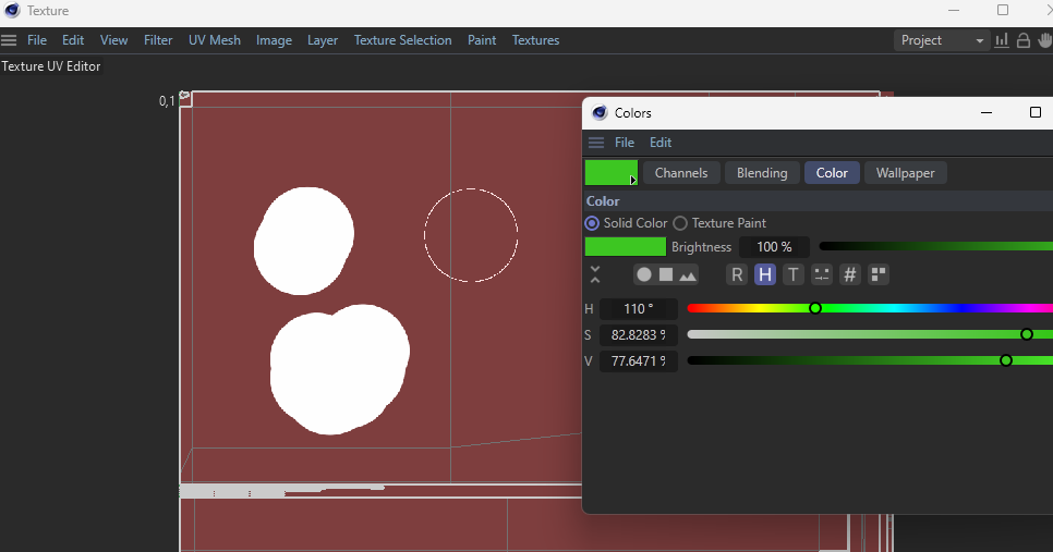 Painting on textures from Octane material is limited only to white color. There is no way to change color.