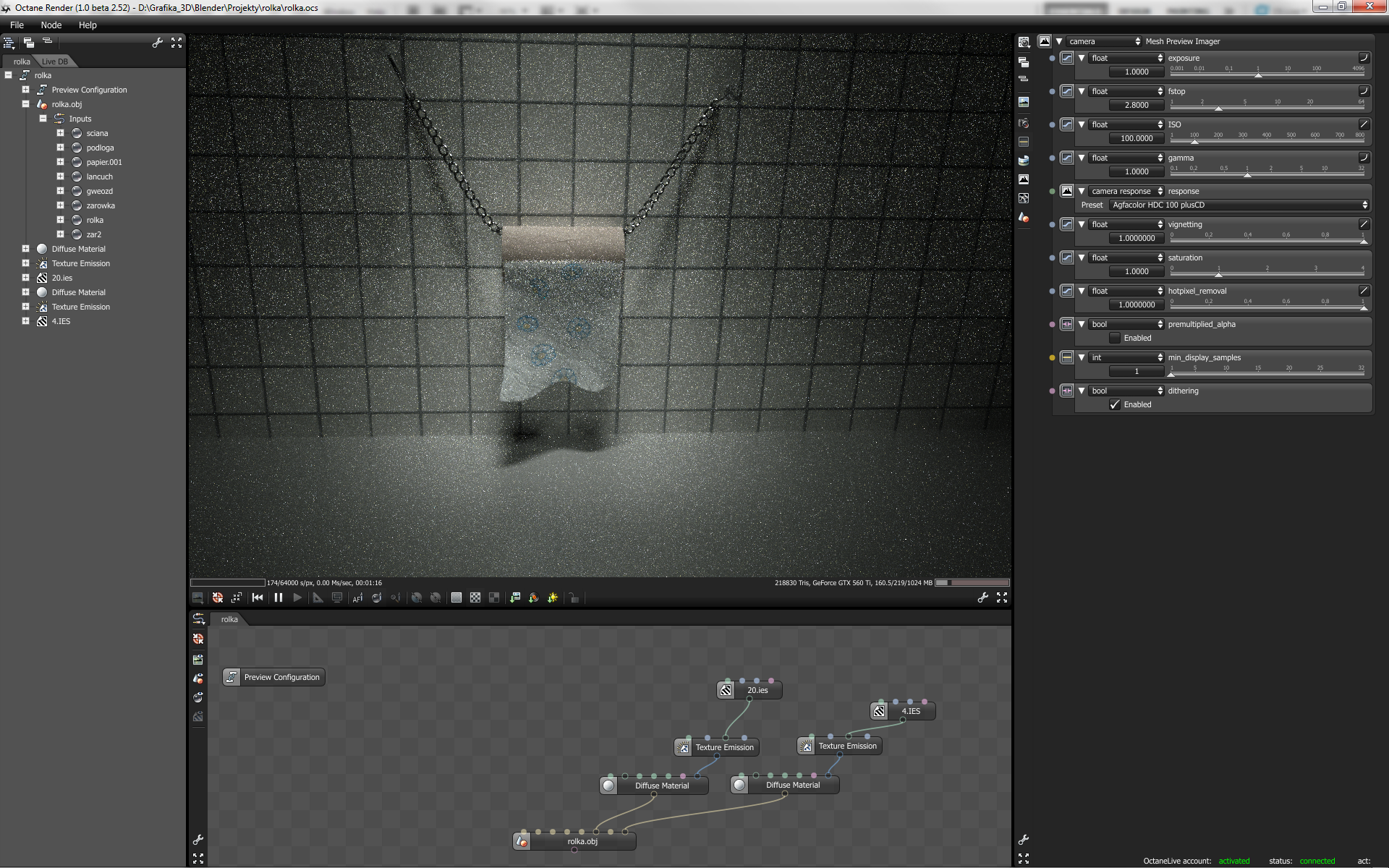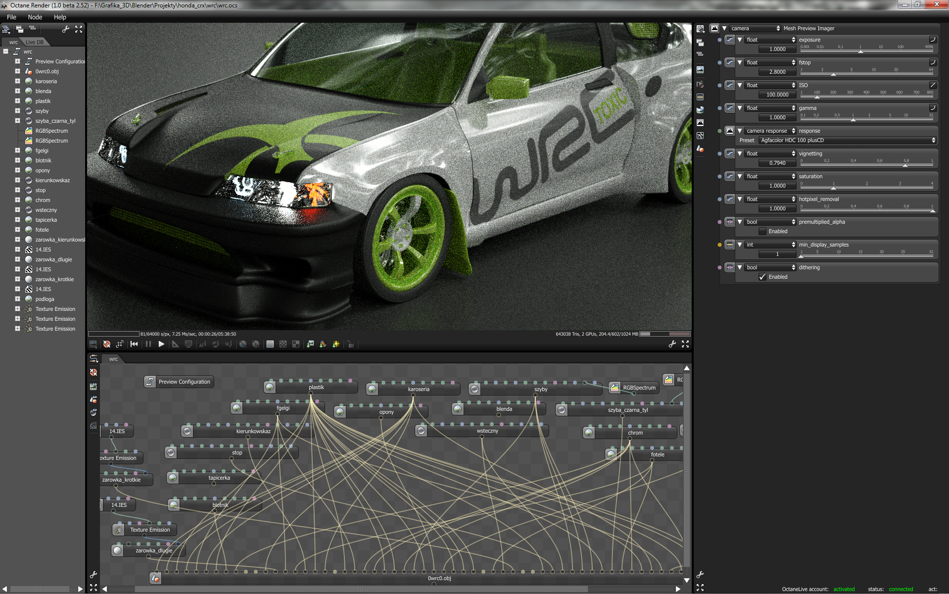 * Octane Render 2.57 (pathtracing 6 depth, ~3000 samples/px, ~6 hours on GTX 460, 2.057.932 tris in Octane)
