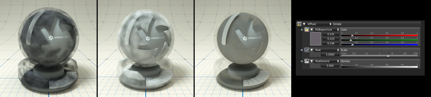 * Materials > Misc > Smoke A smoke material. It uses transparency & SSS. Input parameters should be self-explanatory.