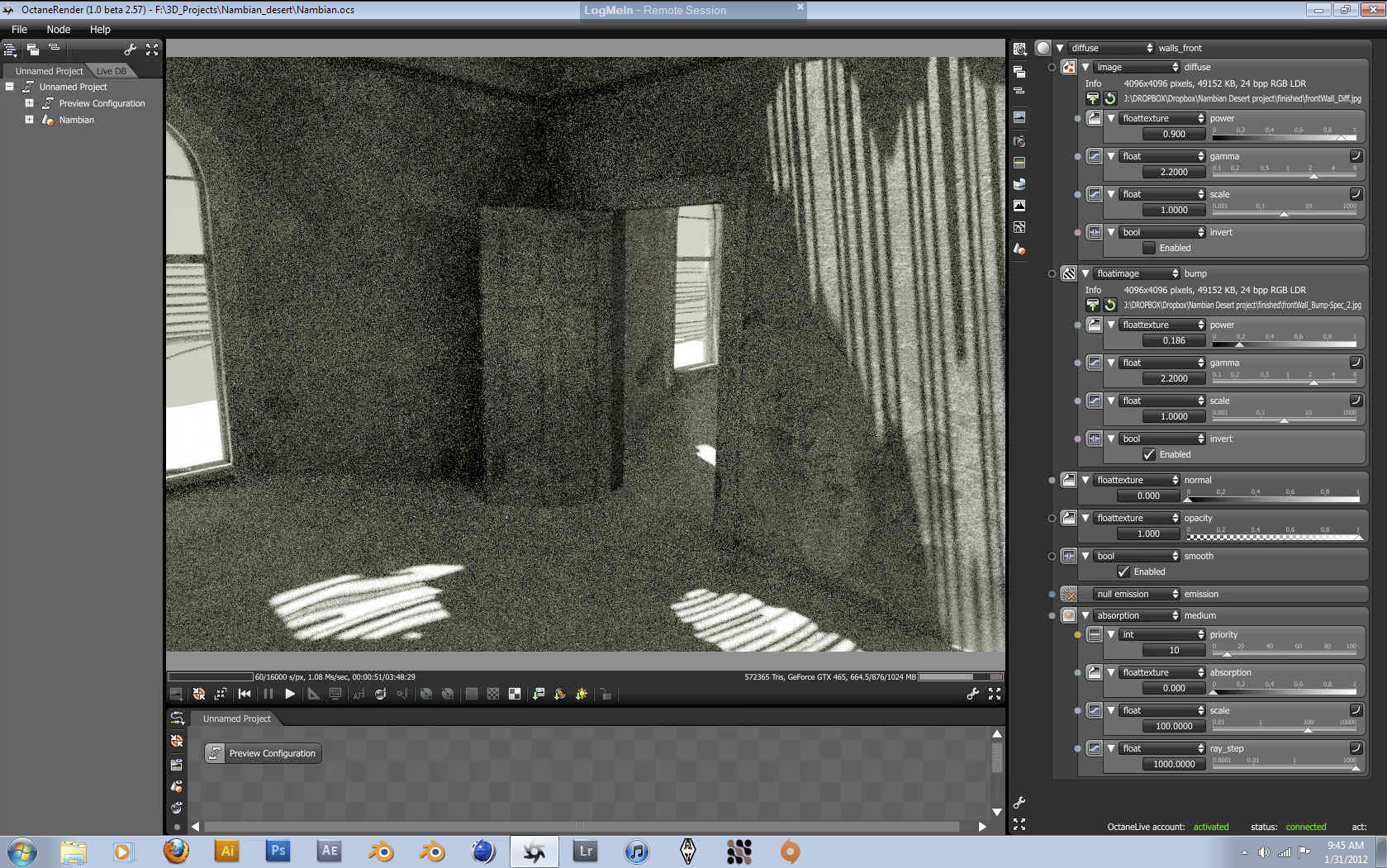 La scena conta 1.539.616 poligoni, ogni render è stato finalizzato in circa 2/3 ore, risoluzione originale 2800x4400 pixel ridotti a 1400x2200 pixel.