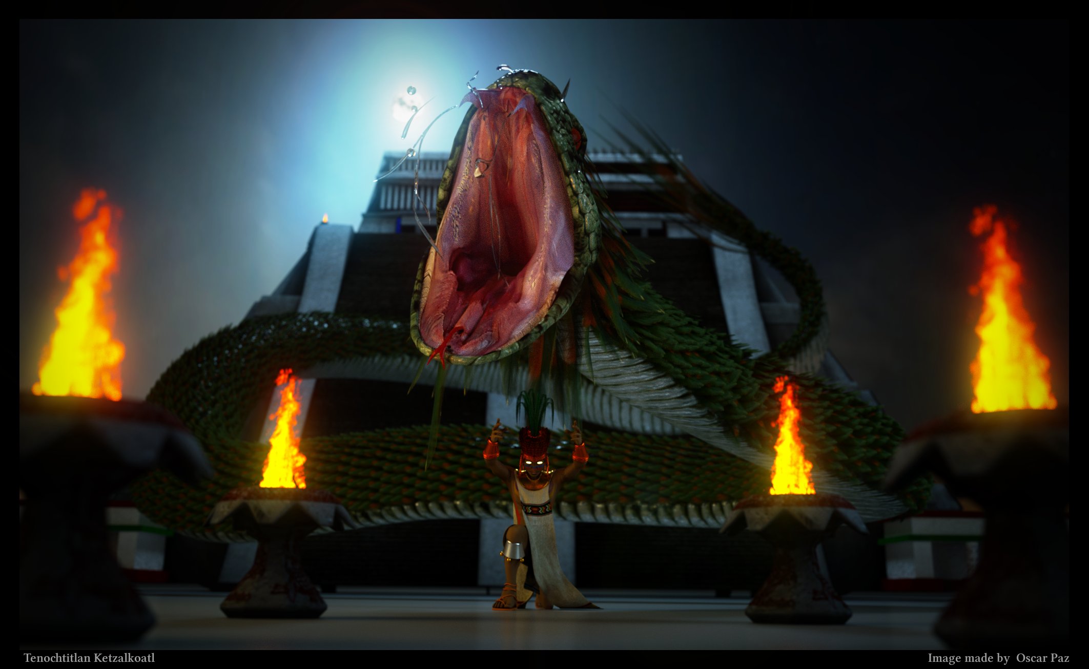 Hey Folks, this is a gain a ketzalkoatl render, now with tlahtoani character, this is a character of a shortfilm i'm doing. i was wondering to post a "el santo" fighter figure, but i didnt have the time to finish it, so i diceded to do de best i can with what i have.