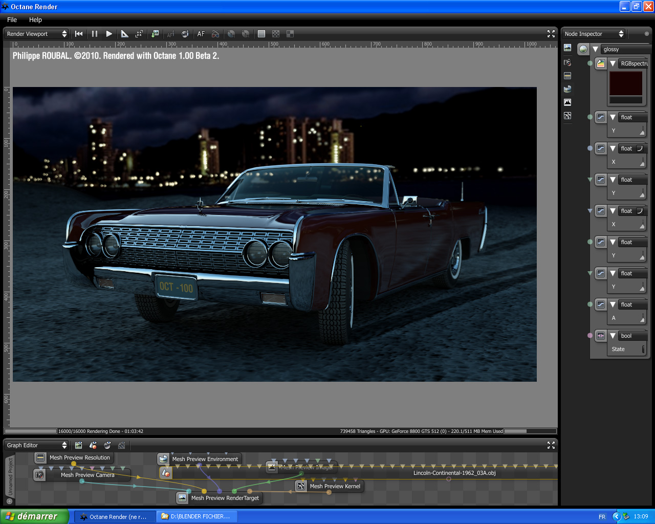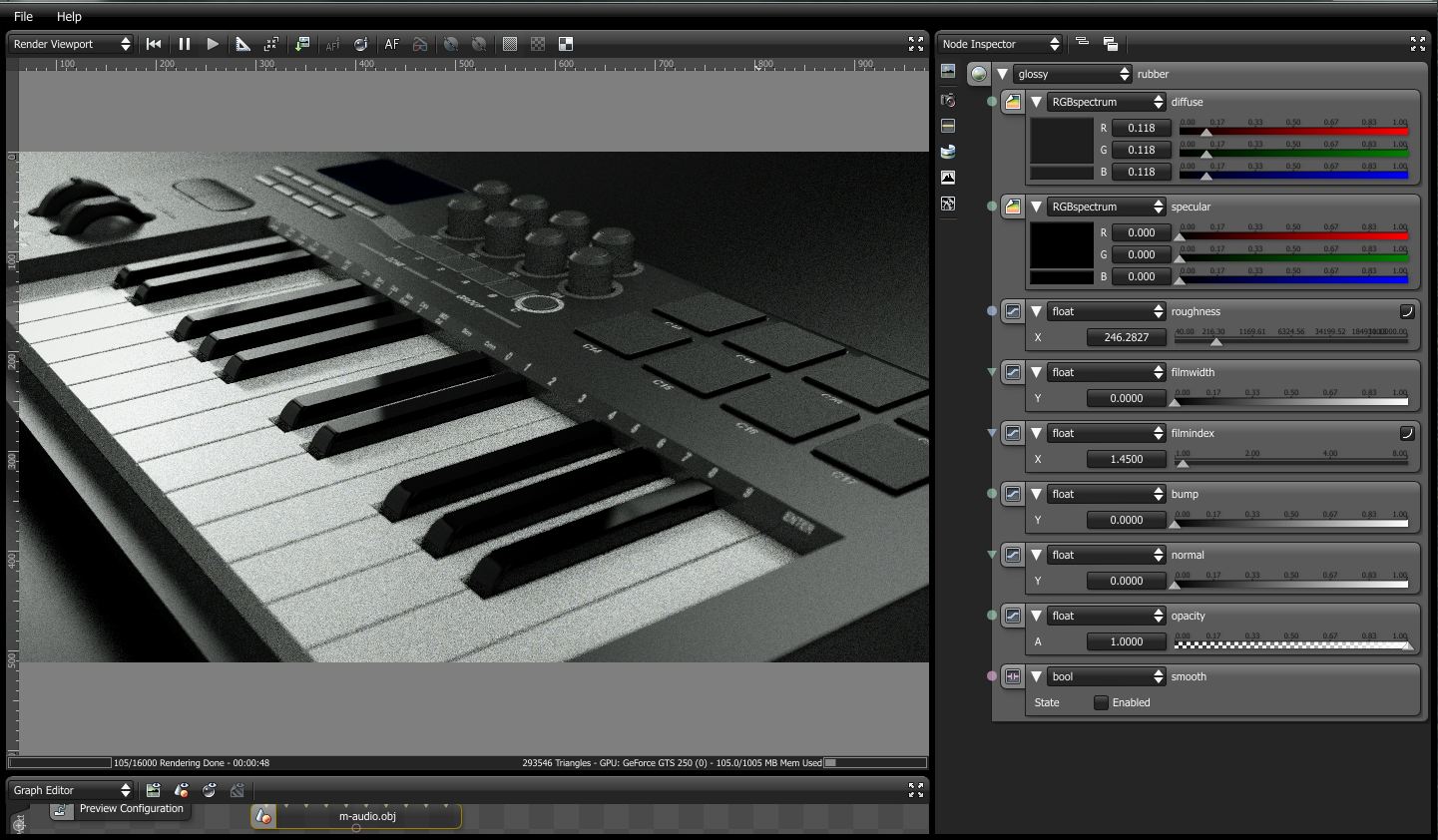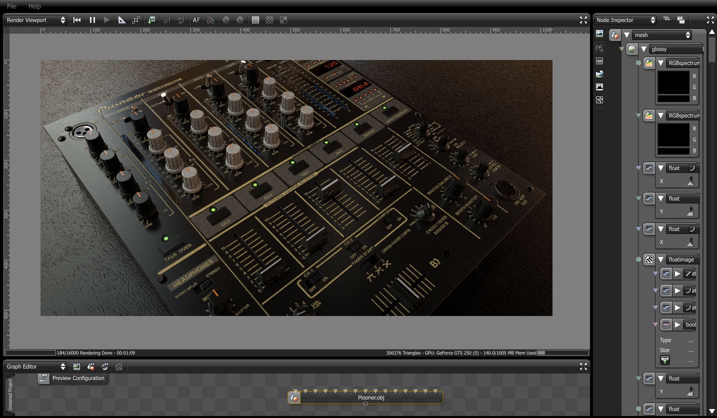 Triangles 306376 render at 3072 x 1536 downscale to 1200px time 45 min on Gts 250 with 1gig.