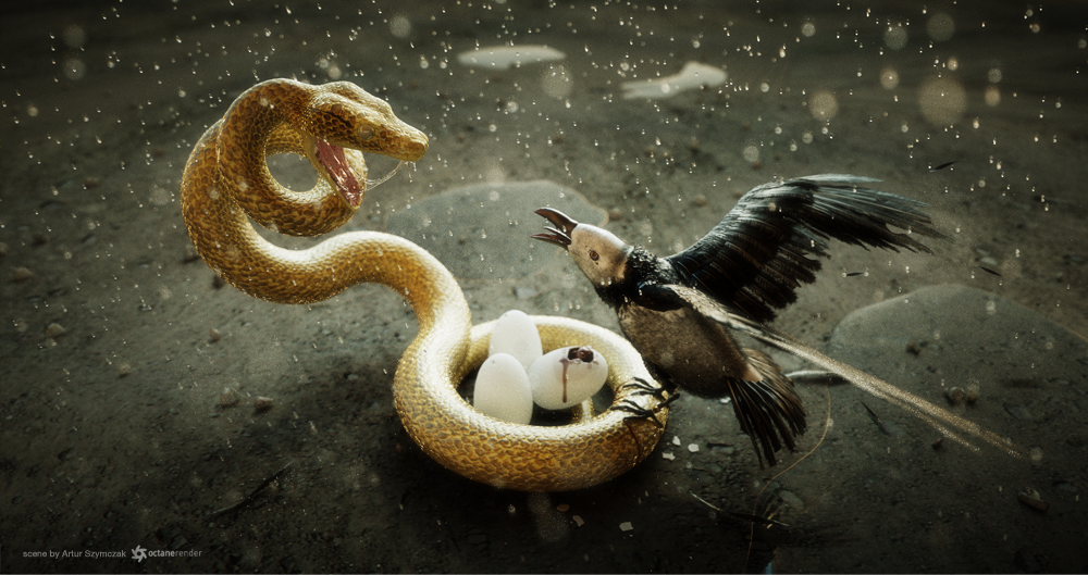 All images rendered with we know what ( no post-production ) only bloom added on scene with snake&bird. We can Yes?