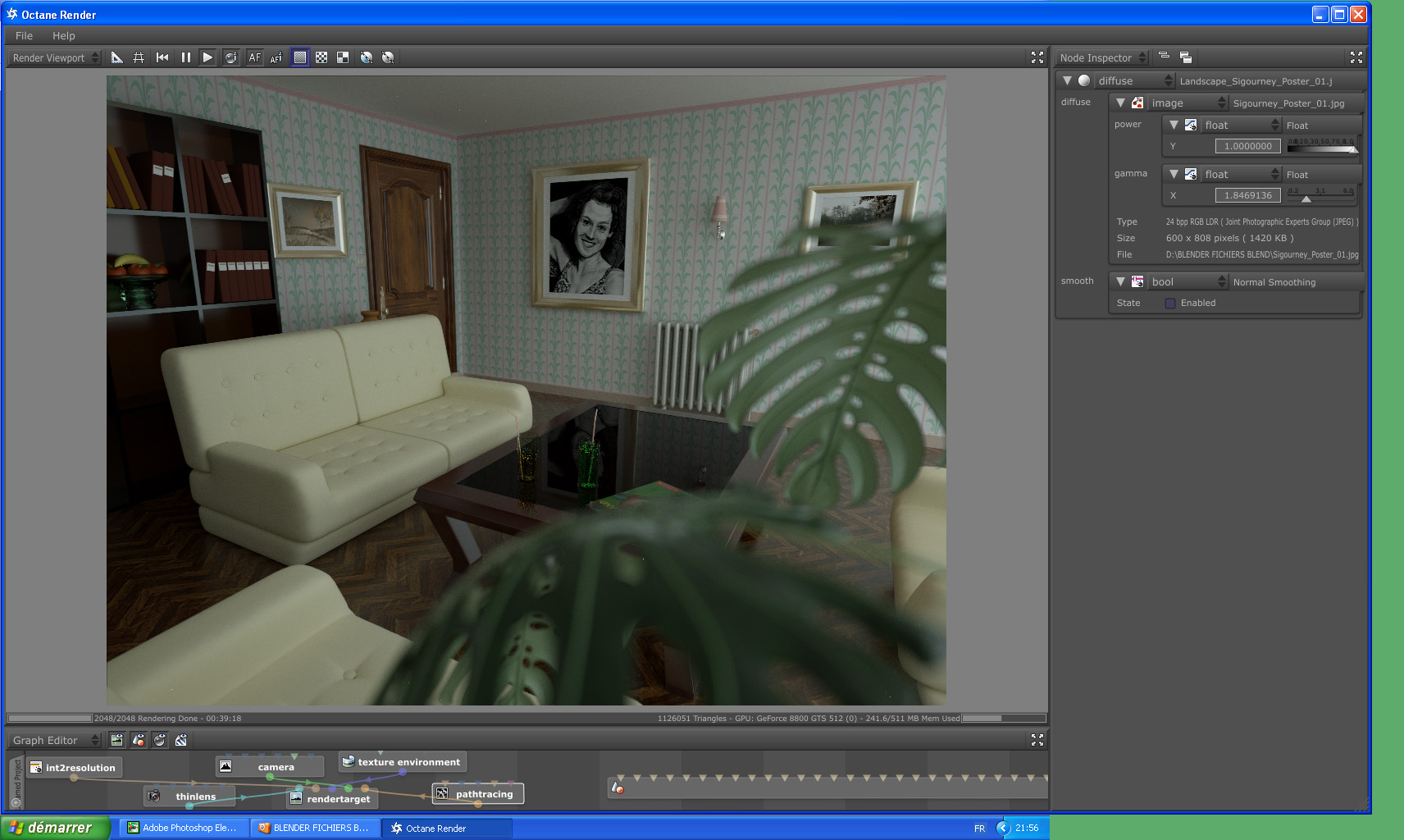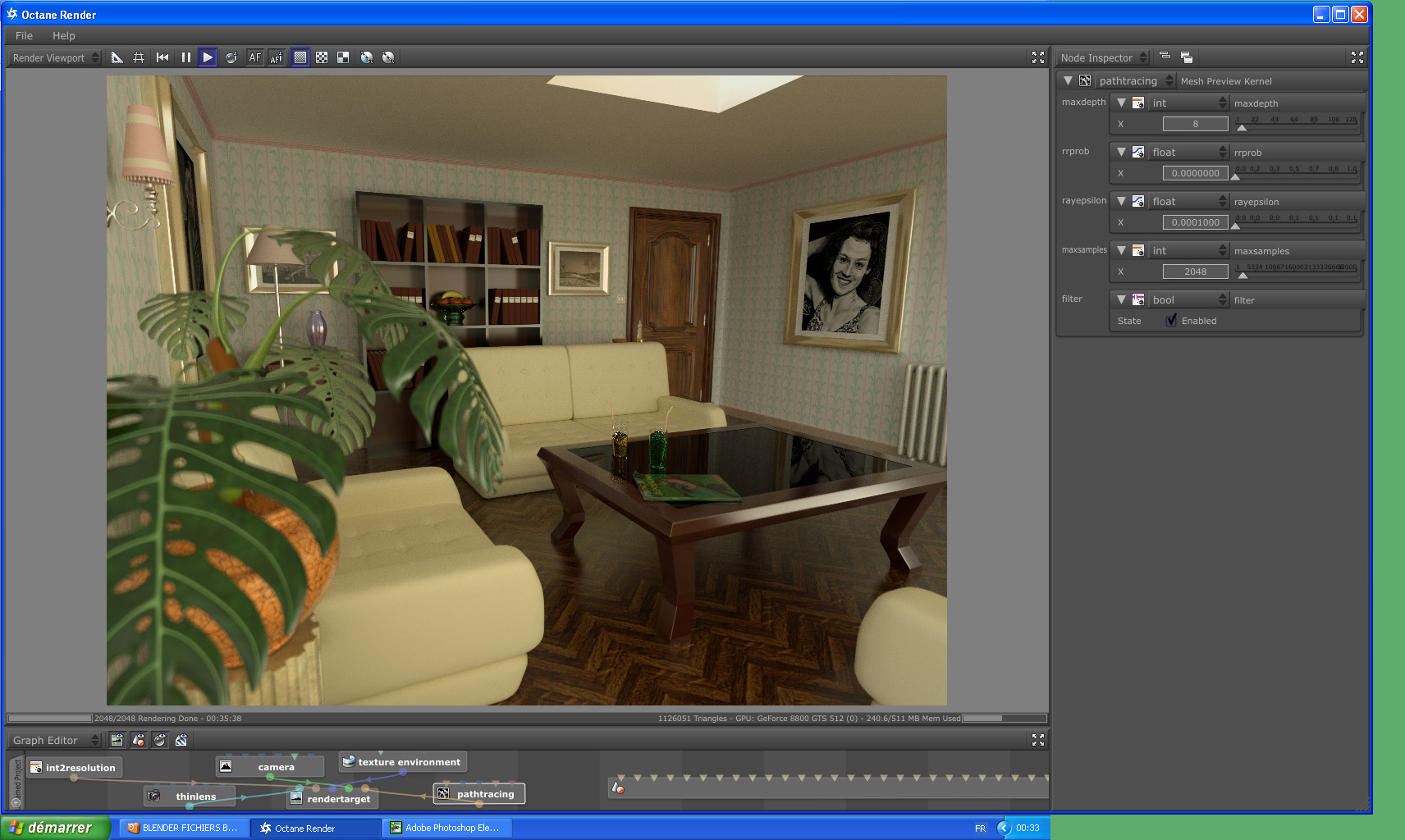 2048 samples per pixel - Pathtracing : all renders around 30-35 minutes - 1 126 051 triangles - 240.6/511 MB Memory used.