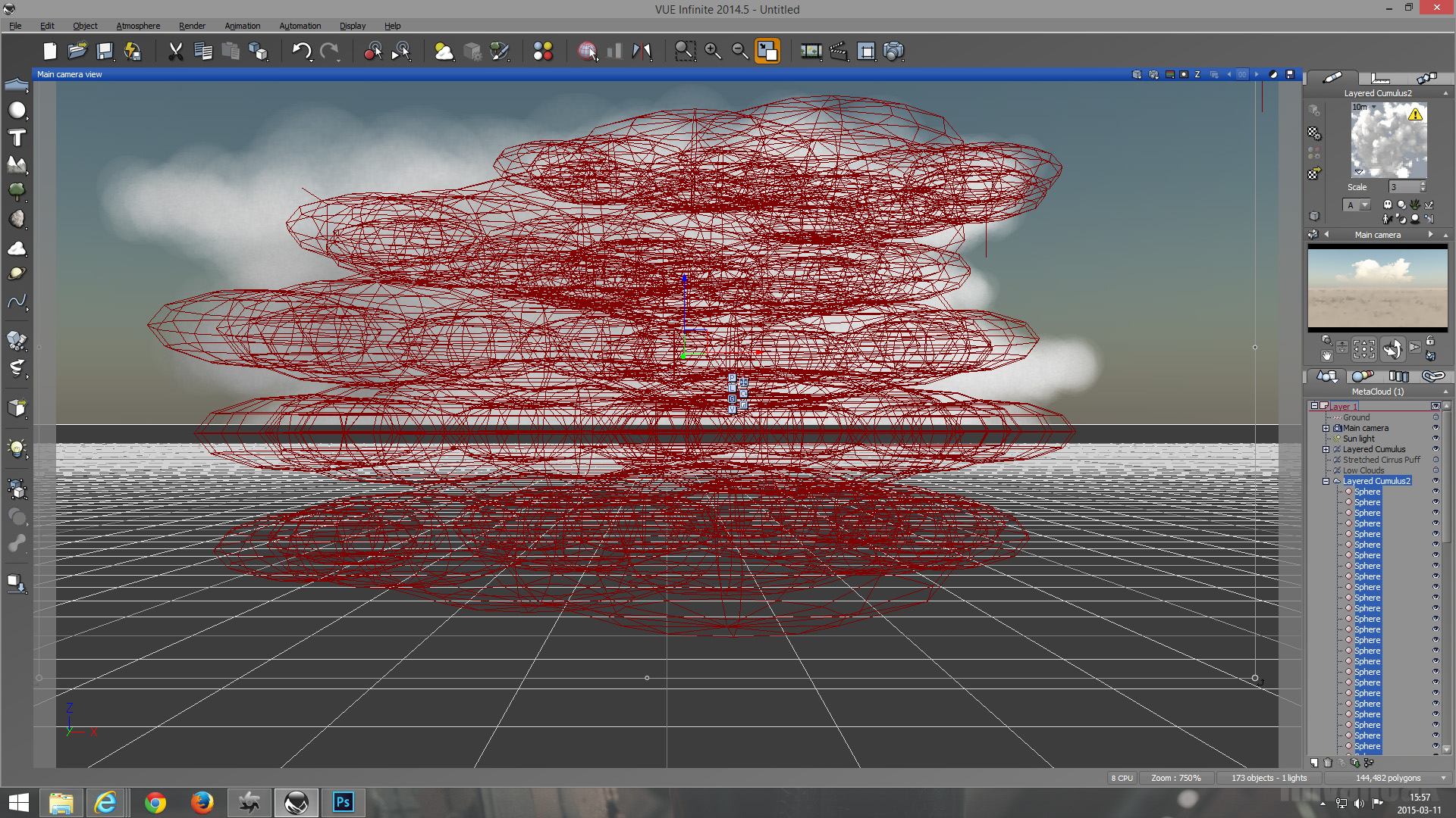 For each e-on vue spherical based metacloud we would need about 25-100 volumetric based stacked spheres in OctaneRender...