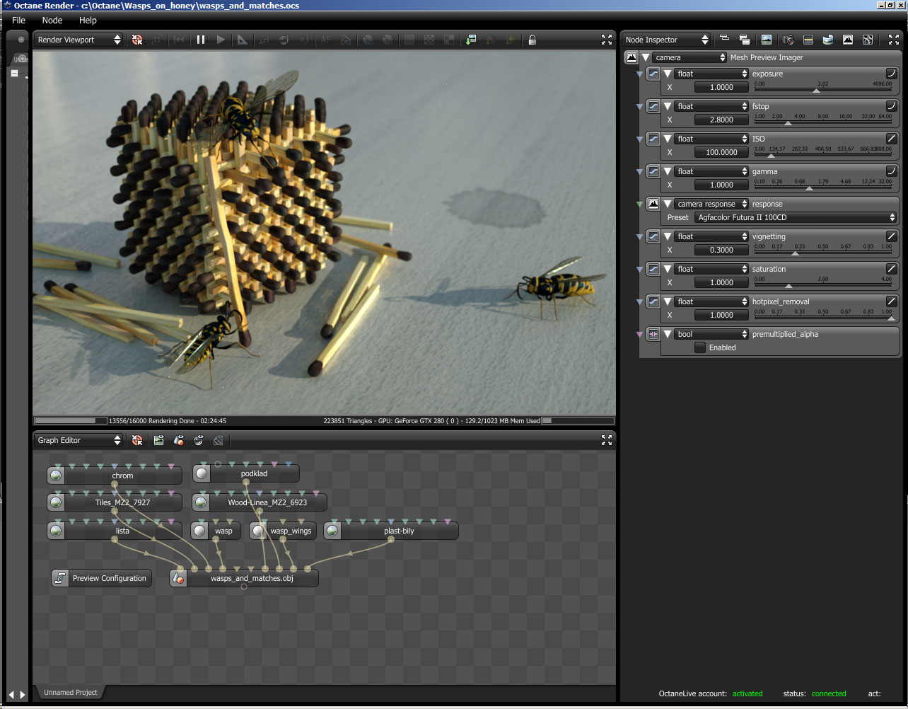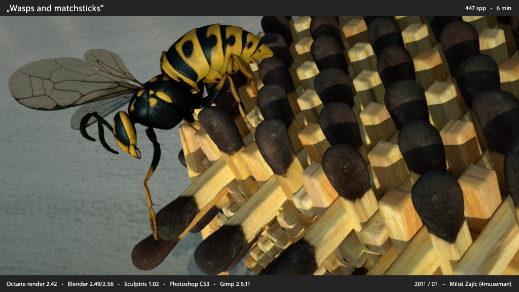 Here are some of my renders of "wasp" scenes. I struggled with some technical difficulties while work (http://www.refractivesoftware.com/forum ... 831#p44831), but I came to conclusion that it may be because of my hardware.