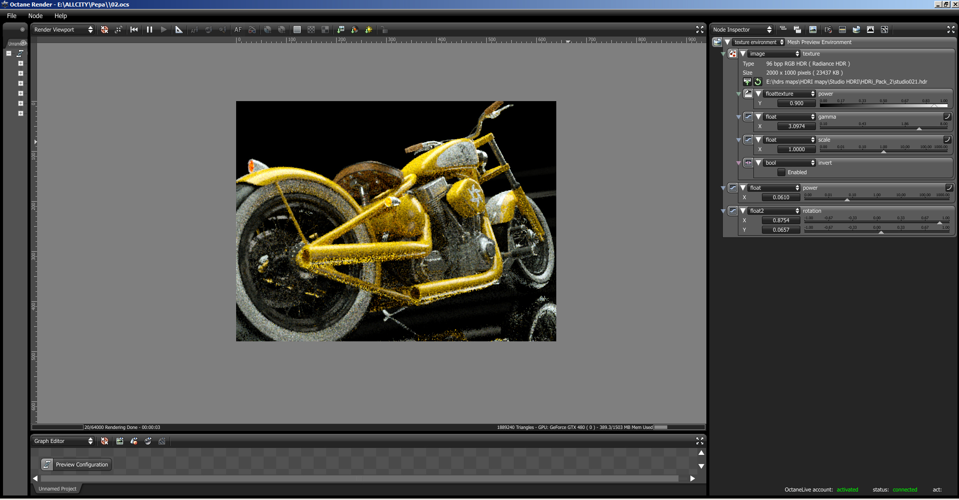 I tried to light the scene with HDR map and the Octane real sky and still didn't find the right light and mood I was originally aiming for. It's pity, that there is no possibility to move light sources in the scene in real time. Maybe in future...