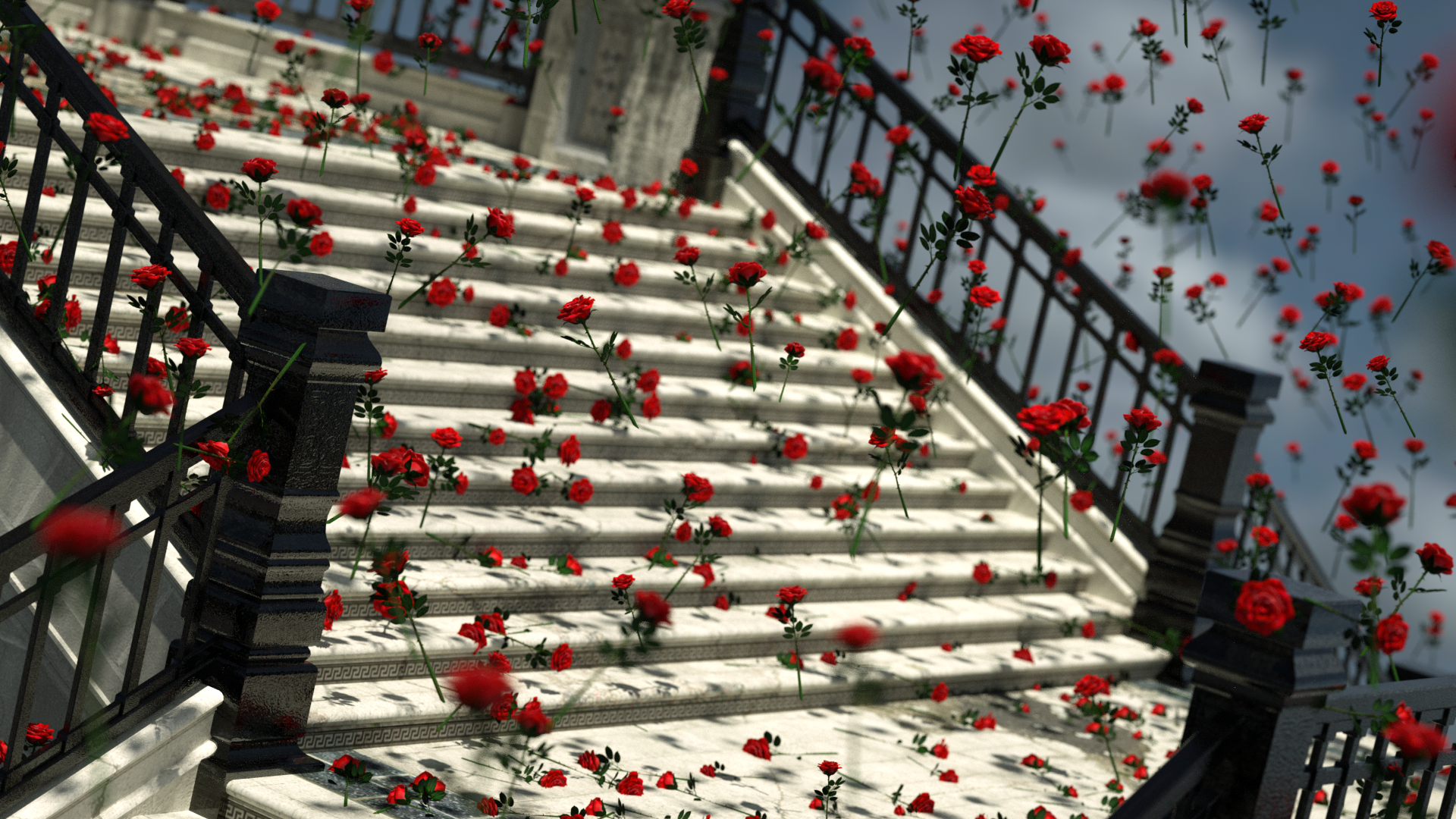 In Phantom Scatter I created one .csv file for the falling roses and one .csv file for the "impact" roses on the ground.