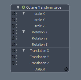 It's odd I can plugin a Float Value node into the 'Octane Rotation Transform' node, but it won't plug into the 'Octane Transform Values' rotation input.