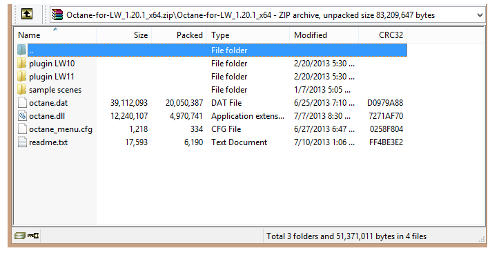 This are the dates and sizes of the Octane.dll and Octane.dat file that I can see in the 1.20.1 x64 .zip file.