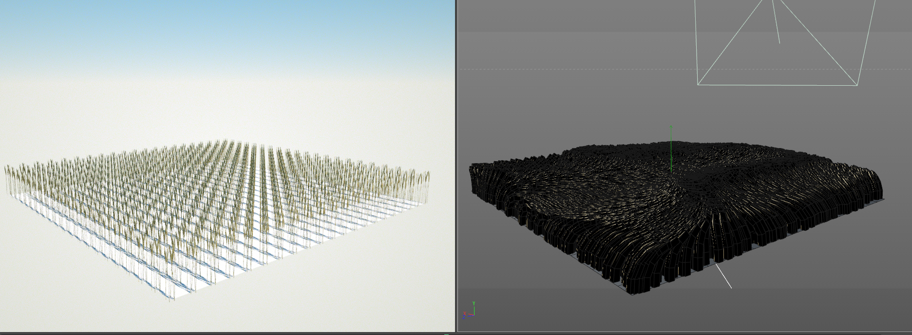 I have some gras (generate Polyons aktivate) and a turbulence-deformer.