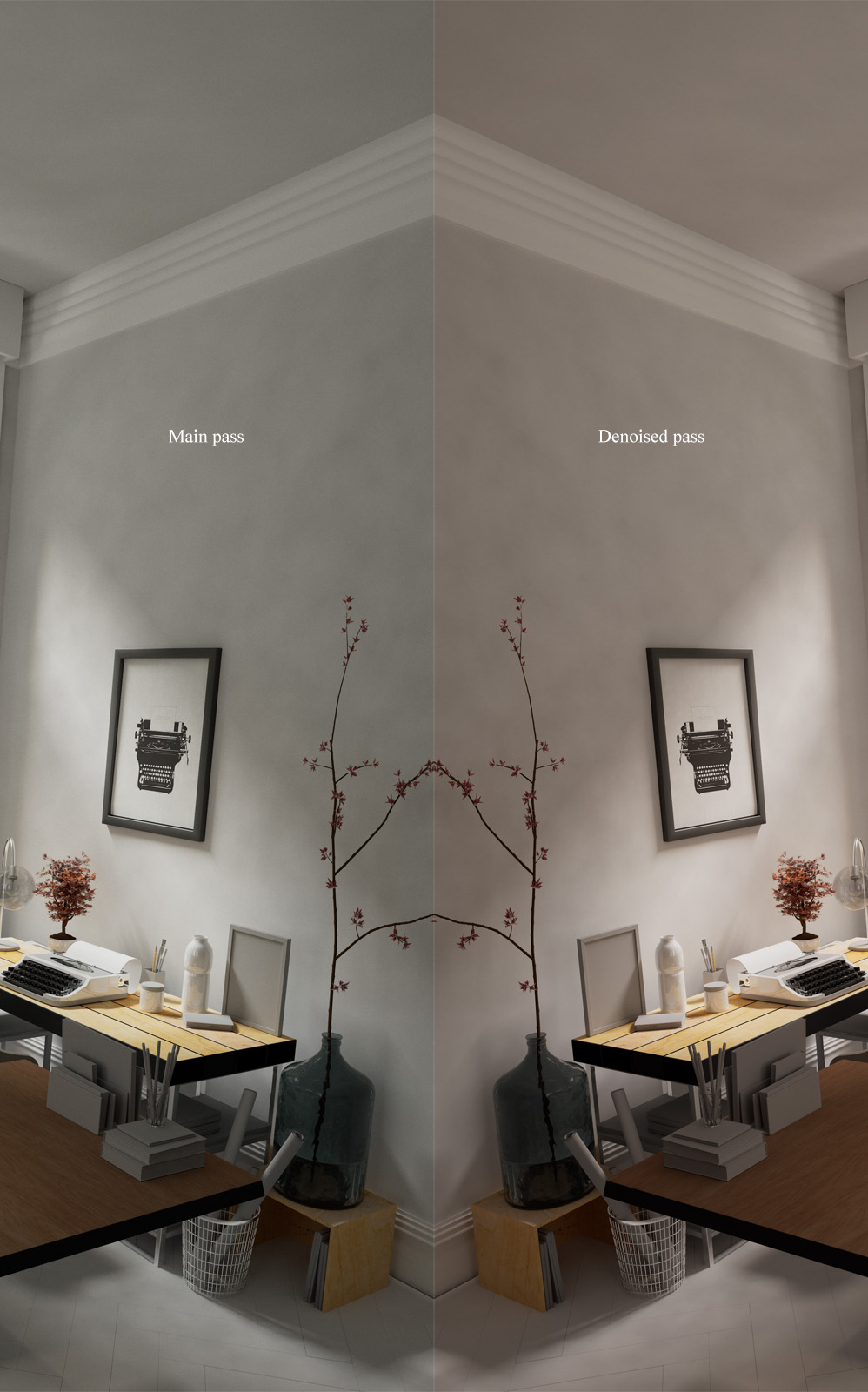 I did adjust adaptive sampling when difficult areas were cleaning up, but still, big difference