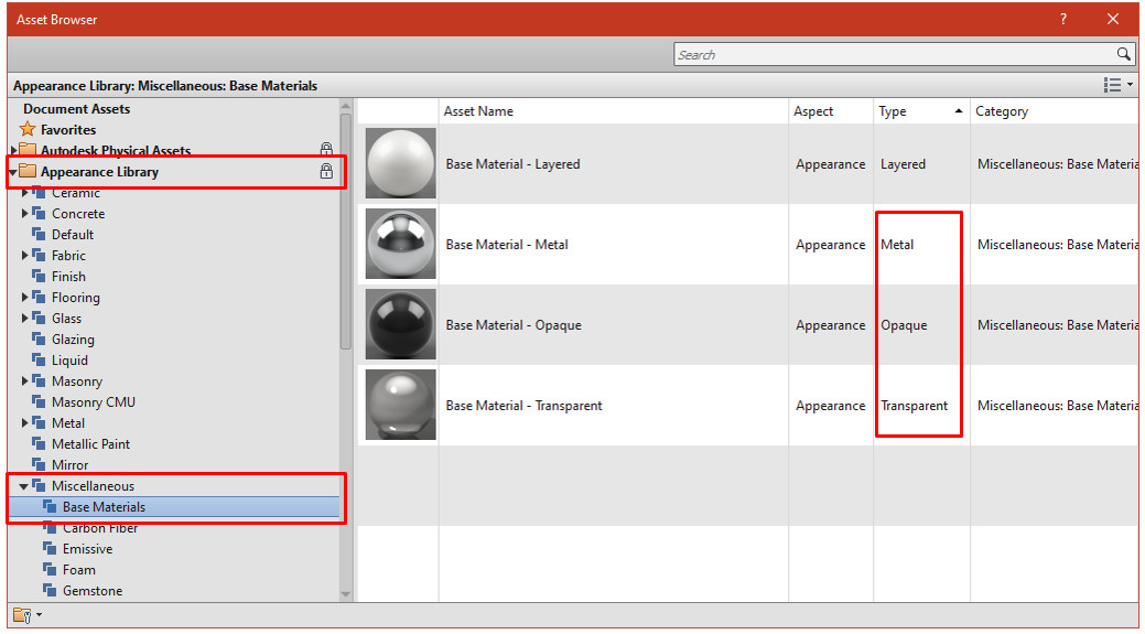 Appearances marked with a yellow exclamation mark are legacy materials, at least in 2019 new materials are still created with a legacy appearance.