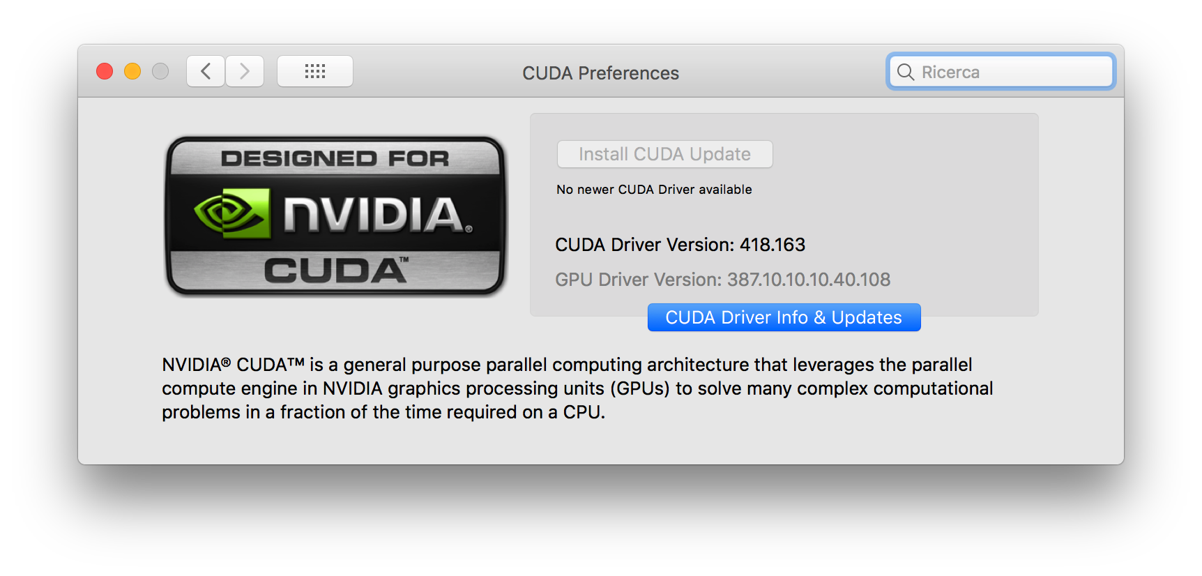 CUDA Driver Version: 387.178 under MacOS 10.12.6
