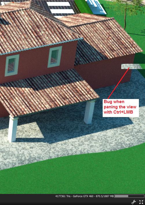 I had a bug when paning the view when rendering in the view port (rendering resolution : HD1080). I used one GTX460.