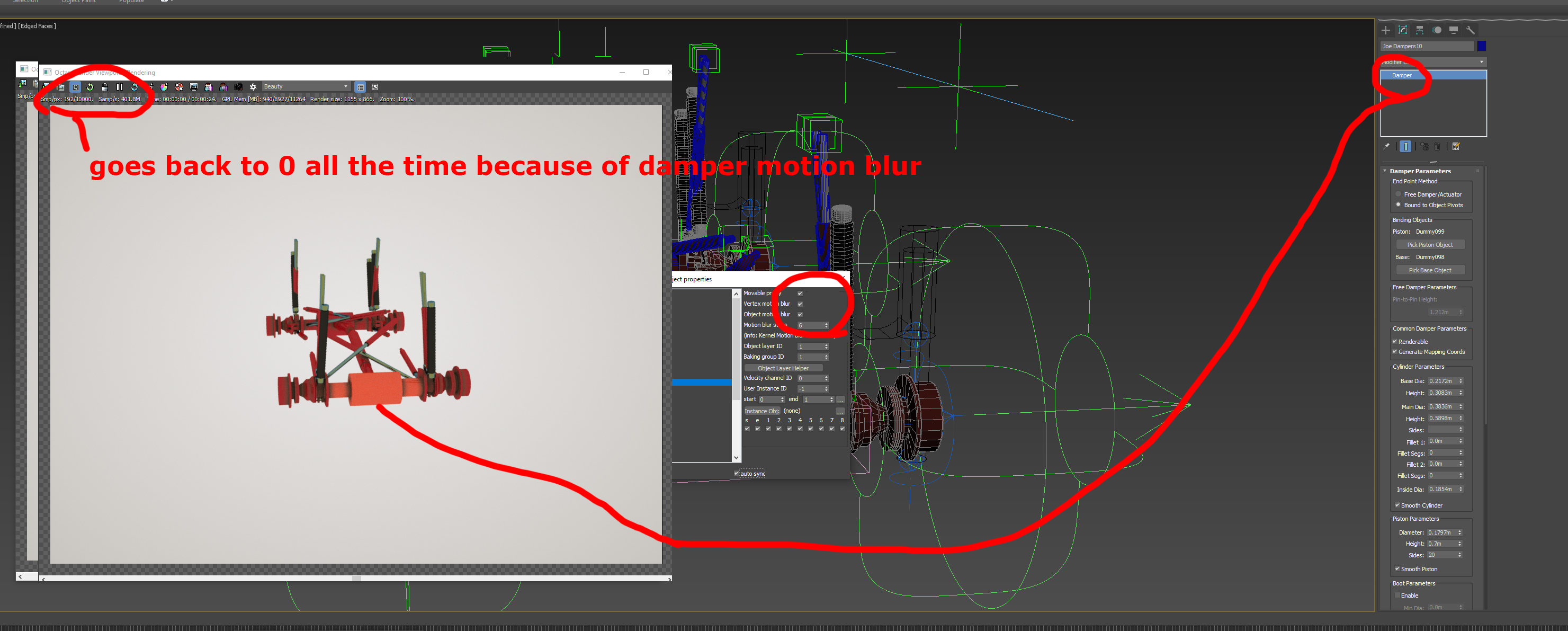 2. This bug was with octane for years. When you use regular 3ds max damper or spring and enable motion blur and movable proxy octane viewport wont render and will go back to 0. Scene is attached