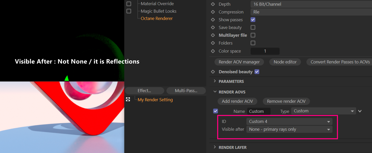 When Custom AOV(Reflection & Refractions) is connected to Composite AOV, it is changed to "None" type.