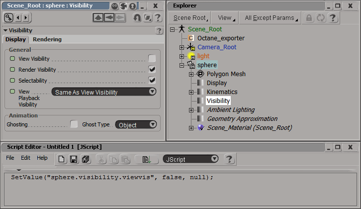 To check if the parameter in xsi6.5 is the same as i checked, open the explorer, double click the visibility and uncheck the "View visibility" checkbox.
