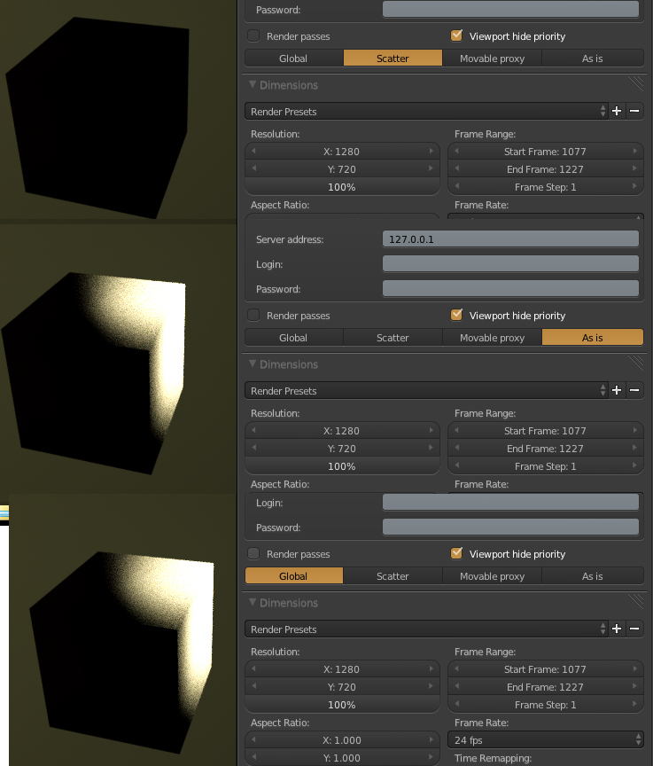 scatter mode and " as is" works only in preview render mode and there only