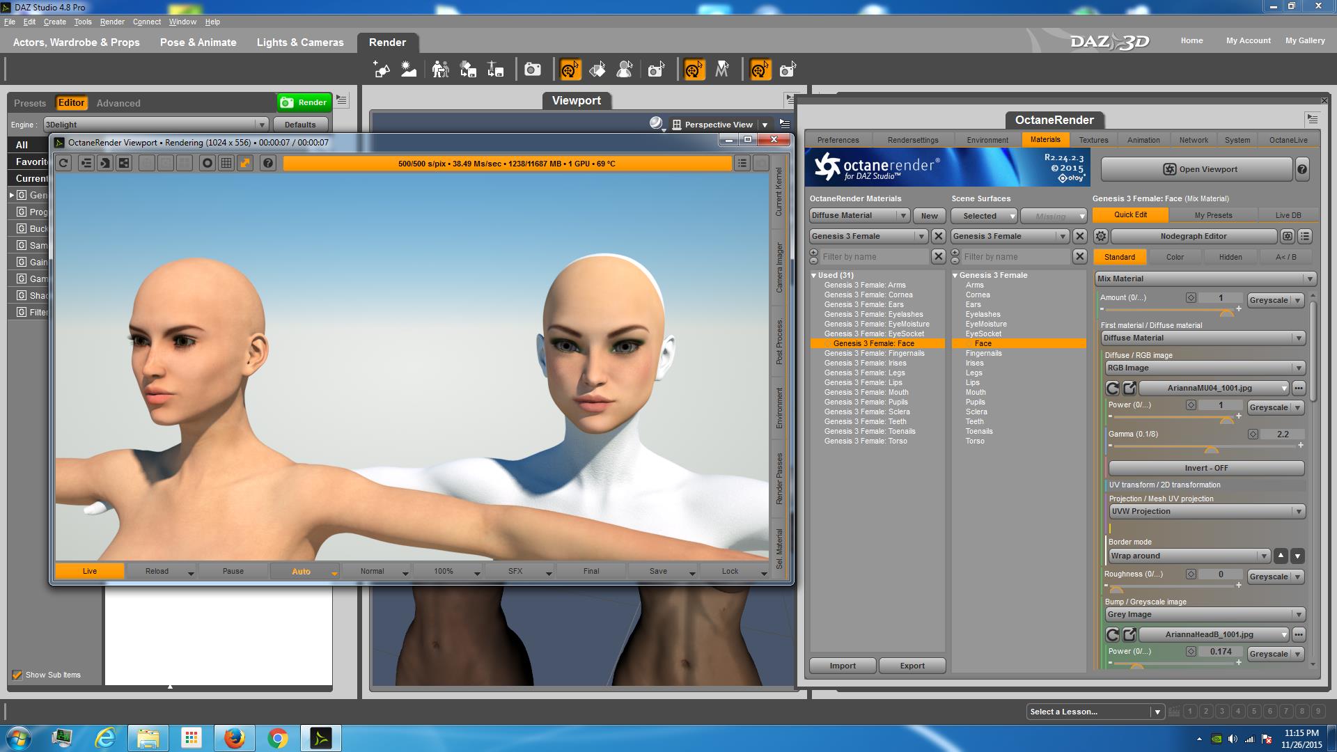 Interesting to note, Arianna (R) comes over as a Mixed Material. The Adaline (L) comes over as Diffuse.